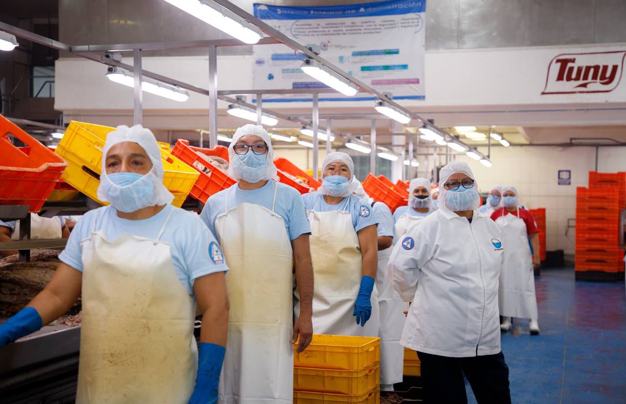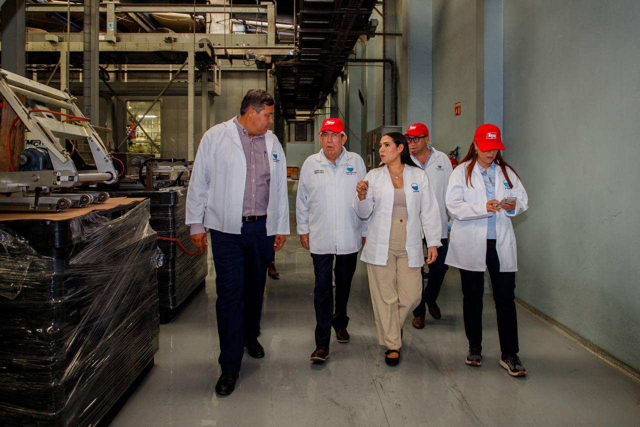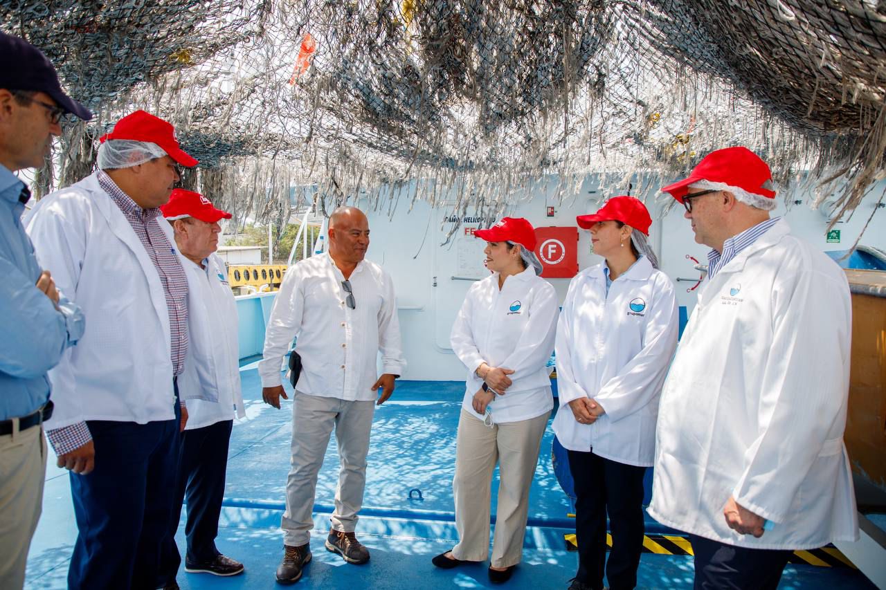 En su gira de trabajo por el municipio de Manzanillo este viernes, la gobernadora de Colima, Indira Vizcaíno Silva, acompañó al titular de la Comisión Nacional de Acuacultura y Pesca (Conapesca) del Gobierno de México, Octavio Almada Palafox, en visita a las instalaciones de la planta de Grupo Marítimo Industrial (Grupomar), que fue encabezada por Antonio Suárez Gutiérrez, presidente y fundador del grupo empresarial.