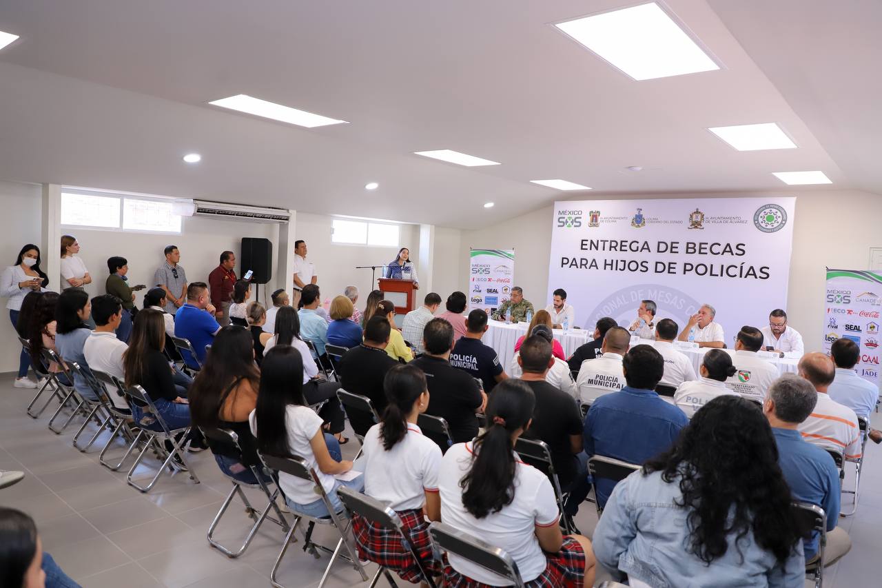 Aarón Cortés Navares, coordinador de la Mesa de Seguridad y Justicia de Colima y Villa de Álvarez, explicó que esa beca es un símbolo de apoyo y un reconocimiento hacia quienes día a día arriesgan su vida por el bienestar de la población; “esta beca no sólo es un beneficio educativo para las hijas e hijos de nuestros policías, sino también un mensaje de solidaridad y gratitud hacia ellas, ellos y sus familias”.