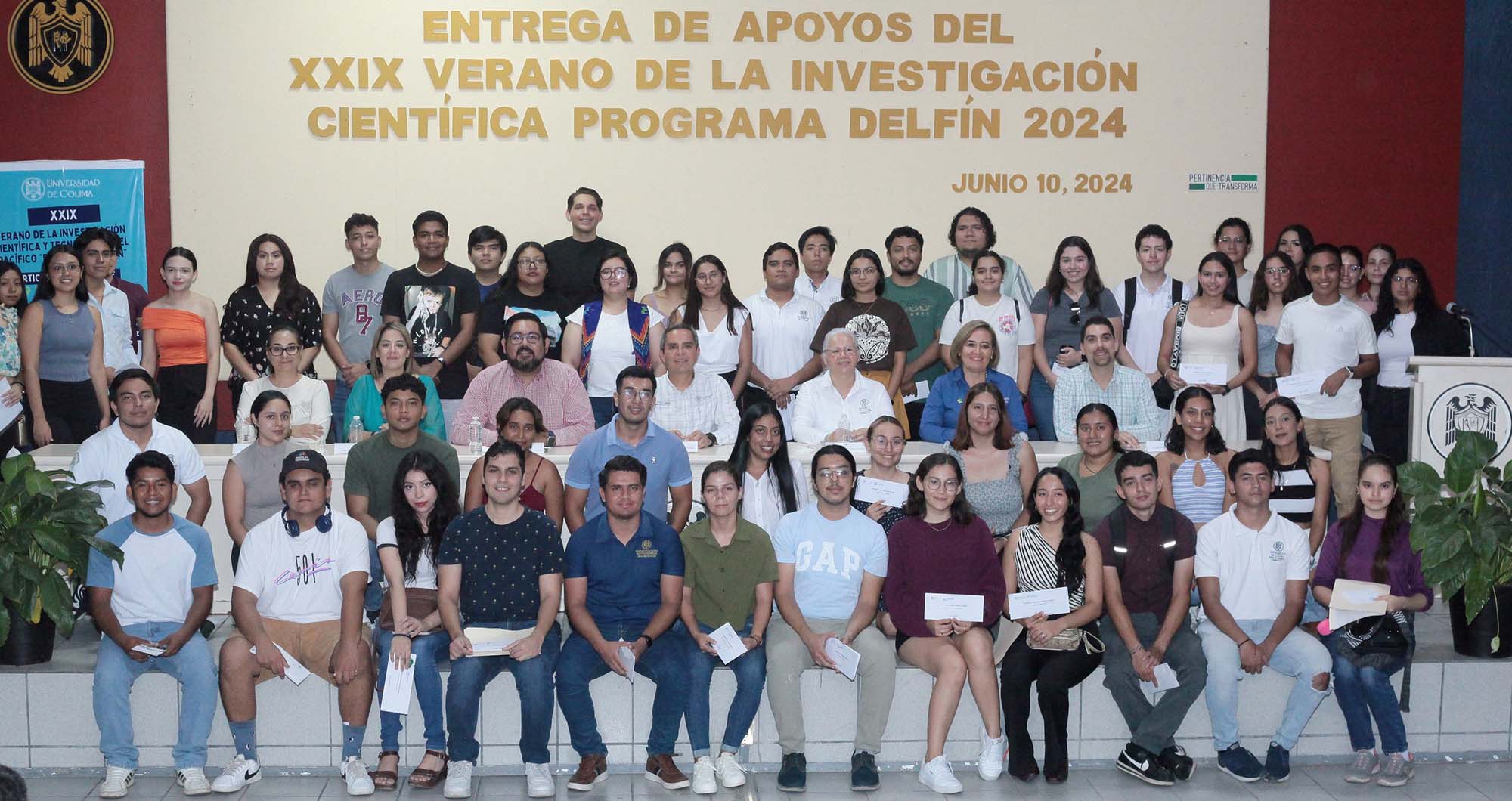 Este lunes a mediodía Christian Torres Ortiz Zermeño, rector de la Universidad de Colima, realizó la entrega de becas a 65 estudiantes de nivel superior que participarán en la XXIX Verano de la Investigación Científica y Tecnológica del Pacifico “Programa Delfín 2024”, del 17 de junio al 2 de agosto.