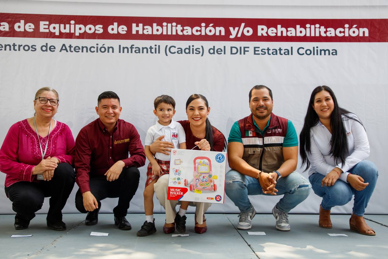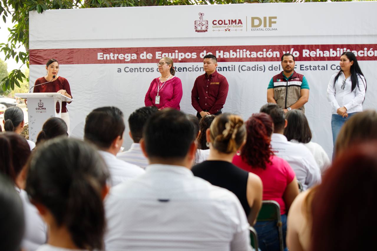 El Gobierno del Estado de Colima entregó este martes equipos de habilitación y rehabilitación, así como material didáctico y lúdico, que DIF Estatal gestionó ante el DIF Nacional para los Centros de Atención Infantil (Cadis) en la entidad; además, fue develado un mapa háptico en la planta baja del Complejo de Atención a Grupos Vulnerables, para que las personas ciegas y con debilidad visual se puedan guiar.