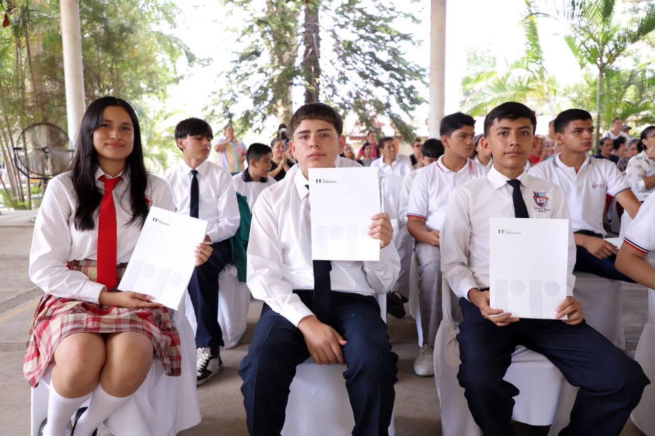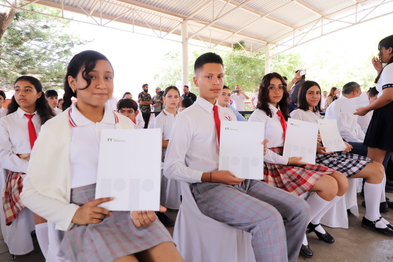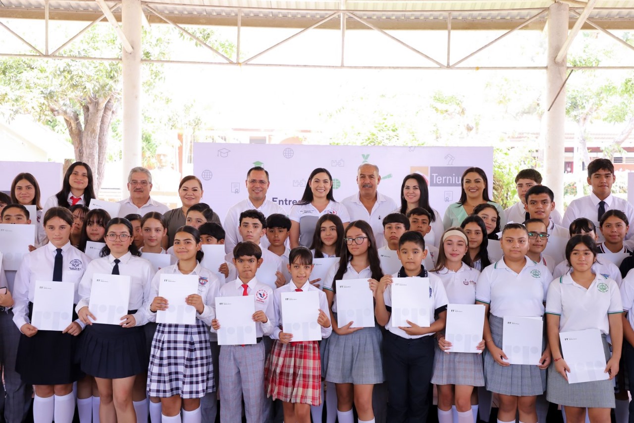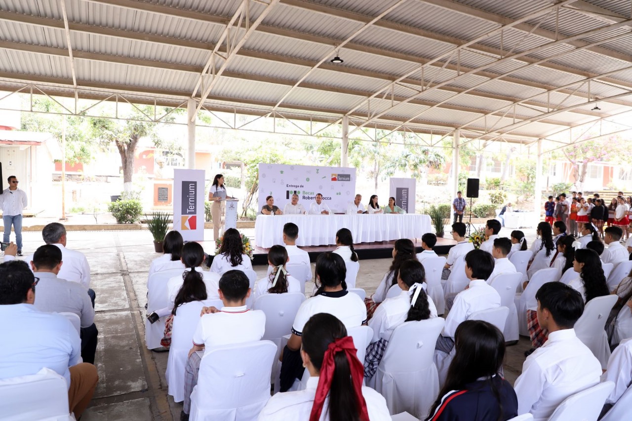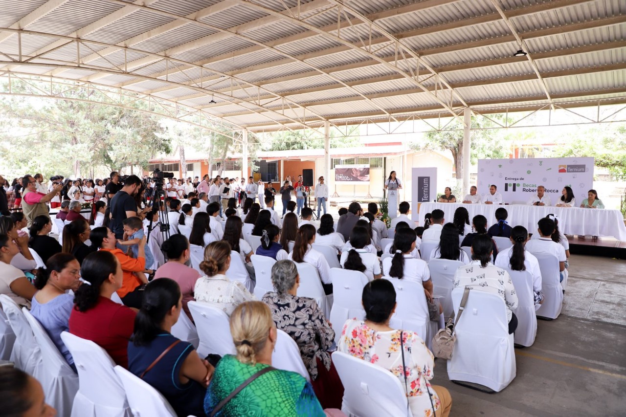 La gobernadora Indira Vizcaíno Silva acompañó la entrega de Becas al Mérito Fundación Ternium 2024 a un total de 59 estudiantes que recibieron este beneficio como reconocimiento a la dedicación y empeño en sus estudios, ceremonia que se realizó este viernes en la escuela secundaria No. 5 ‘José Mora y Verduzco’ en la cabecera municipal de Cuauhtémoc, donde estudió la mandataria.