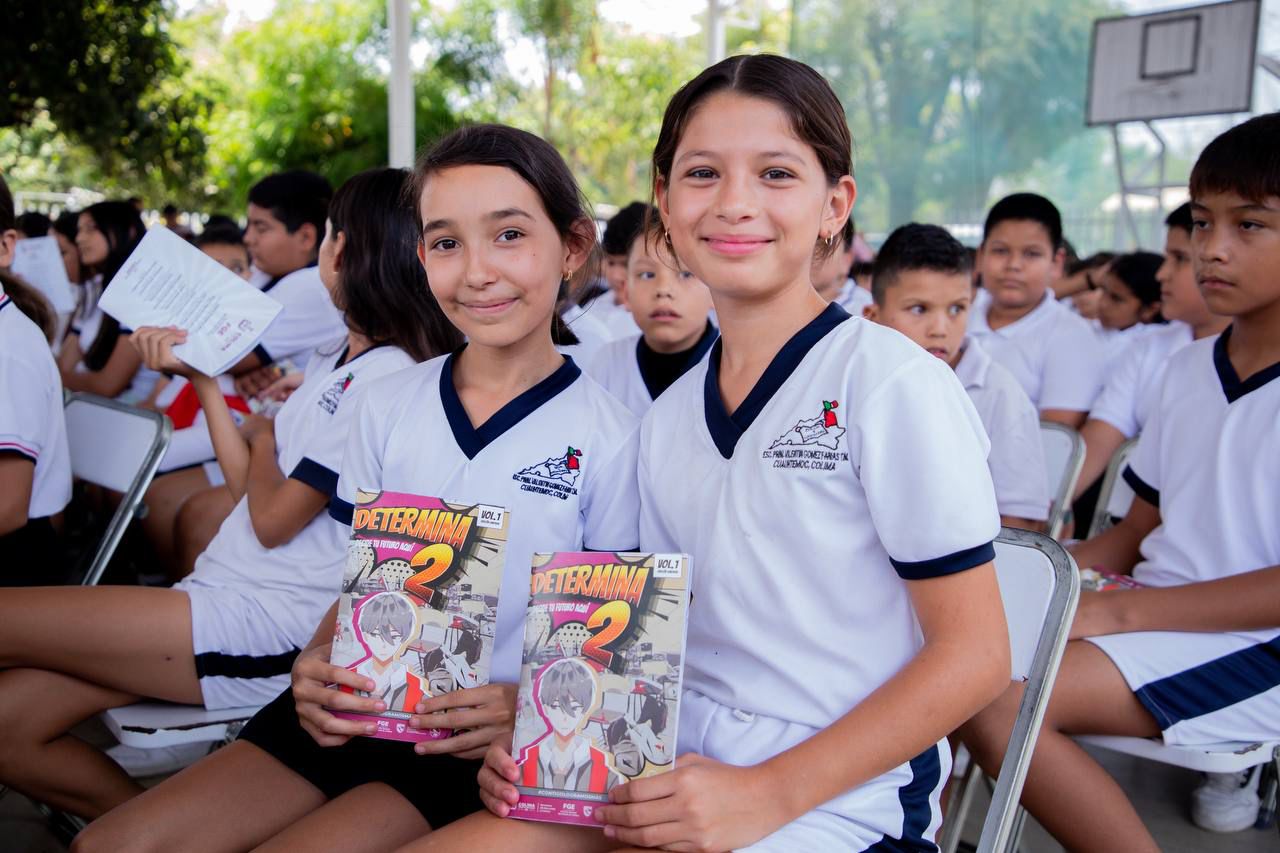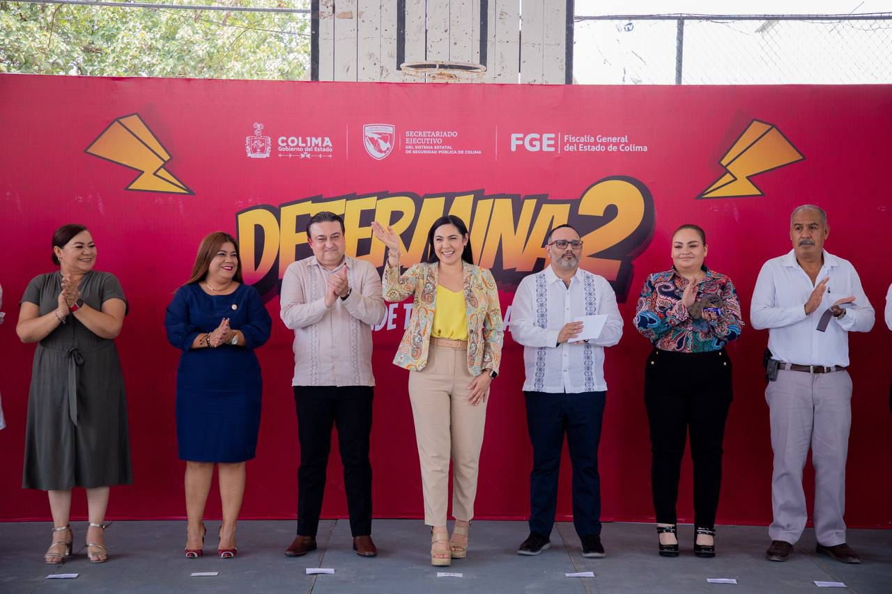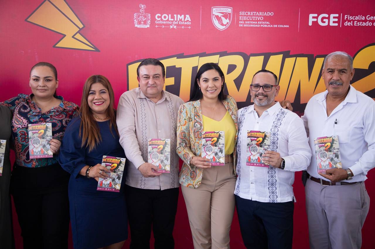 La gobernadora de Colima, Indira Vizcaíno Silva, y el titular de la Fiscalía General del Estado (FGE), Bryant Alejandro García Ramírez, acompañados por el secretario general de Gobierno, Eloy García Alcaraz y más autoridades locales, arrancaron la Estrategia Interinstitucional de Prevención ‘Determina2’, con la que, a través de una historieta, buscan incidir en estudiantes de sexto grado de primaria de la entidad, para que sepan identificar y prevenir factores de riesgo y conductas anti-sociales.