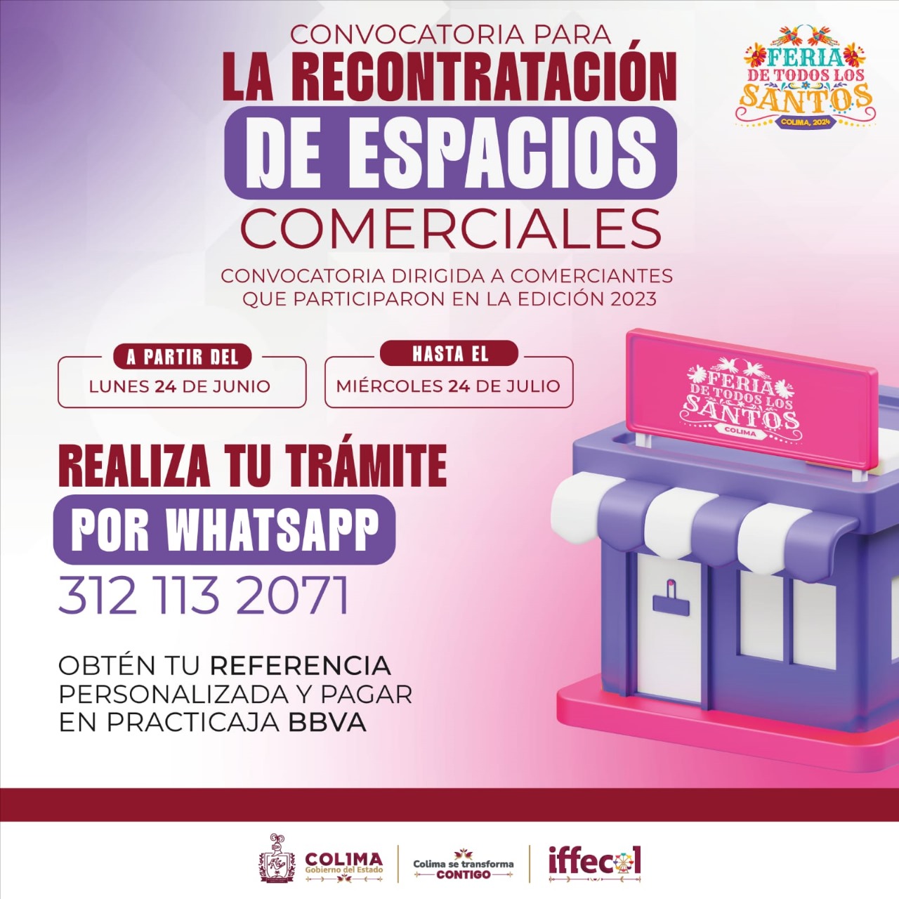 El Instituto de Fomento de Ferias y Exposiciones del Estado de Colima (Iffecol) continúa con los preparativos de la edición 85 de la Feria de Todos los Santos e invita a todas y todos los comerciantes de la entidad para recontratar espacios para la venta de sus productos y servicios.