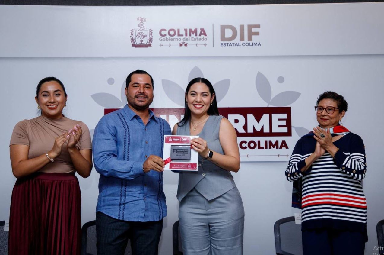 * La asistencia social en Colima es una prioridad y nos enorgullece que se han logrado grandes avances en este ámbito, dijo la mandataria Indira Vizcaíno, en la entrega del informe anual de este organismo