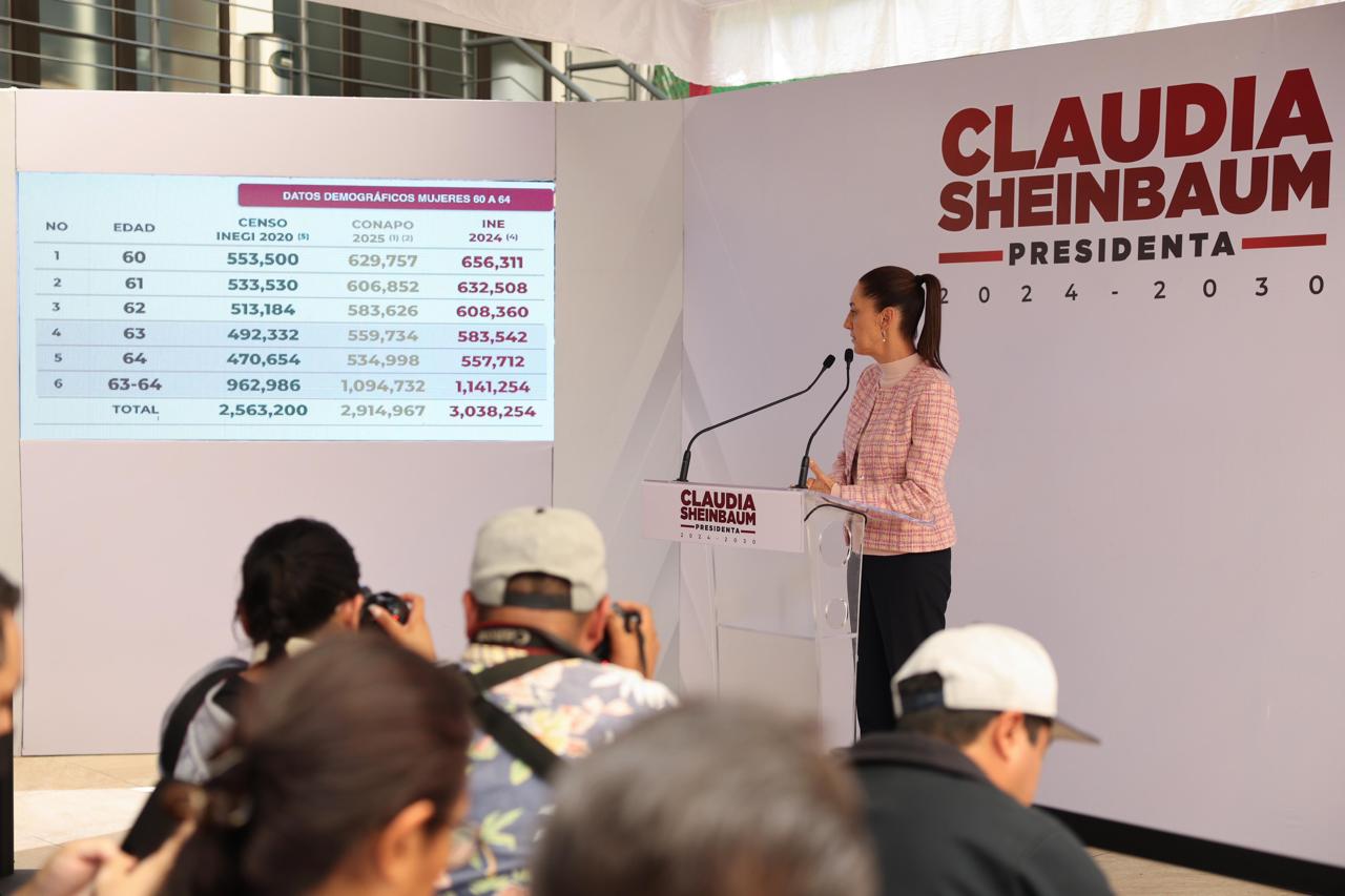 Estimó que, de acuerdo a los datos del Instituto Nacional de Estadística y Geografía (INEGI); de los registros del Instituto Nacional Electoral (INE) y las estimaciones de la Consejo Nacional de Población (CONAPO), serán 1 millón 141 mil 254 mujeres de 63 y 64 años quienes recibirán su apoyo en en el 2025 y aproximadamente 170 mil mujeres indígenas.