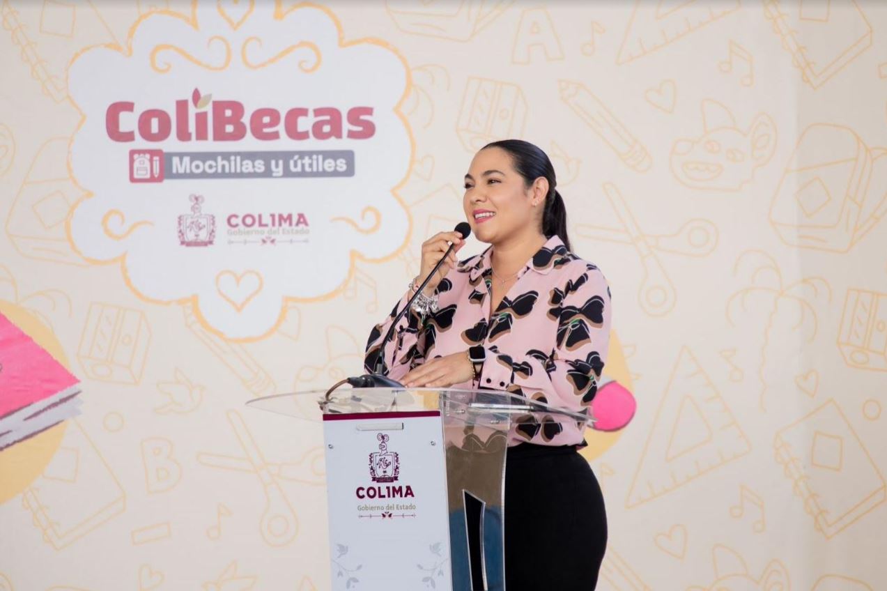 La gobernadora de Colima, Indira Vizcaíno Silva, inició este lunes en la unidad deportiva ‘María Villa Montero’ de Comala, la entrega de paquetes que beneficiarán a más de 78 mil estudiantes de preescolar y primaria en los diez municipios de la entidad con el Programa ColiBecas Mochilas y Útiles, en el que se invierten más de 16.4 millones de pesos, durante este año 2024, sólo en este rubro.