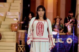 La cuarta jornada de actividades en el 10º Encuentro de Pueblos Originarios ‘Festival Tonelhuayo: Nuestras Raíces’ concluyó con la realización del primer desfile y venta de indumentaria colimota “Bordados del Volcán” en el Museo Palacio del Gobierno de Colima, una pasarela dedicada a enaltecer y difundir el trabajo realizado por las bordadoras tradicionales y artesanos colimenses.