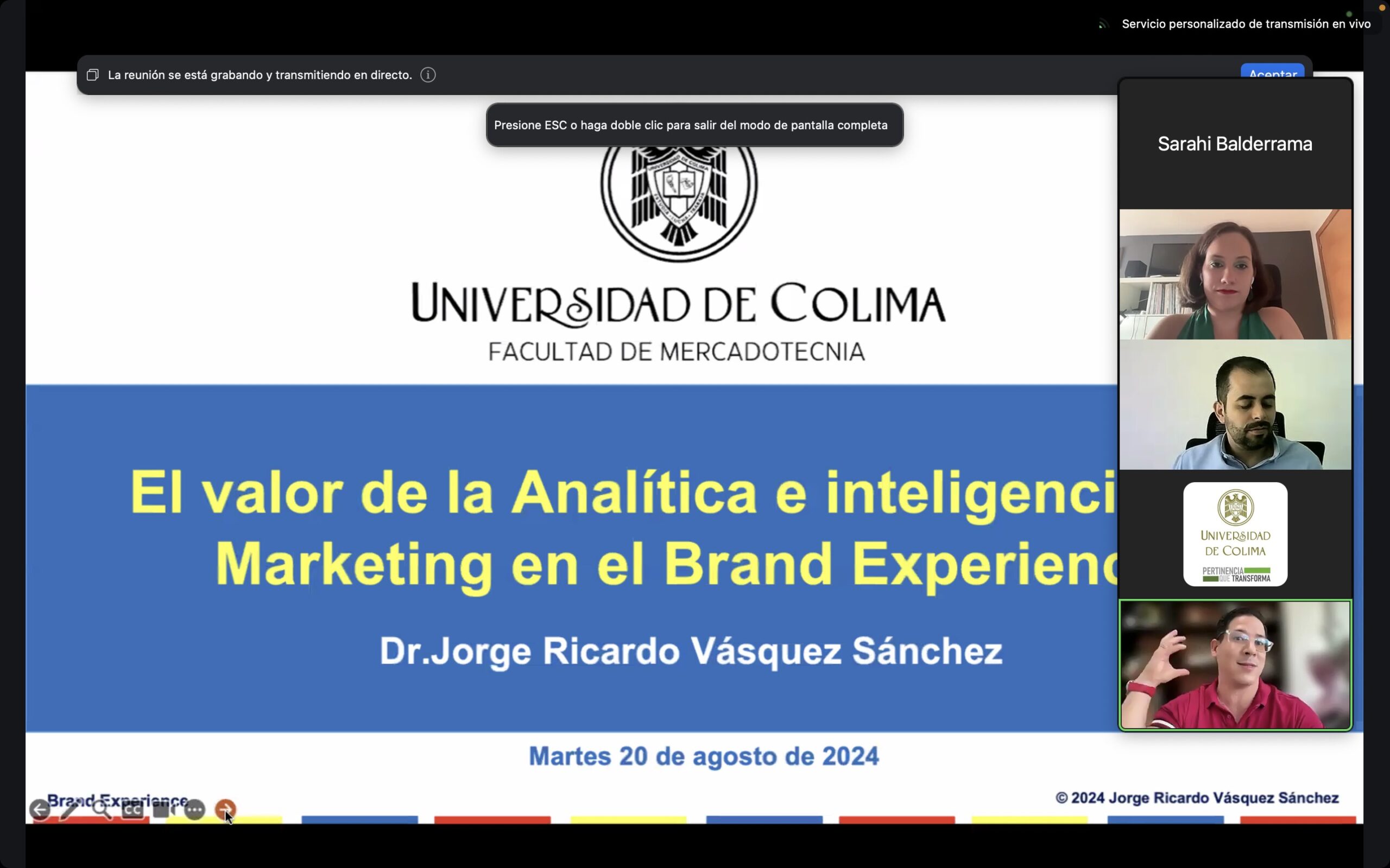 En su disertación, Laura compartió parte de su tesis doctoral sobre agrupaciones de variables en géneros musicales y cómo la estadística está presente en la vida cotidiana. Después, Ricardo Vásquez Sánchez, académico de la Facultad de Mercadotecnia, compartió su conocimiento sobre las aristas que tiene la experiencia de las marcas en el mundo digital.