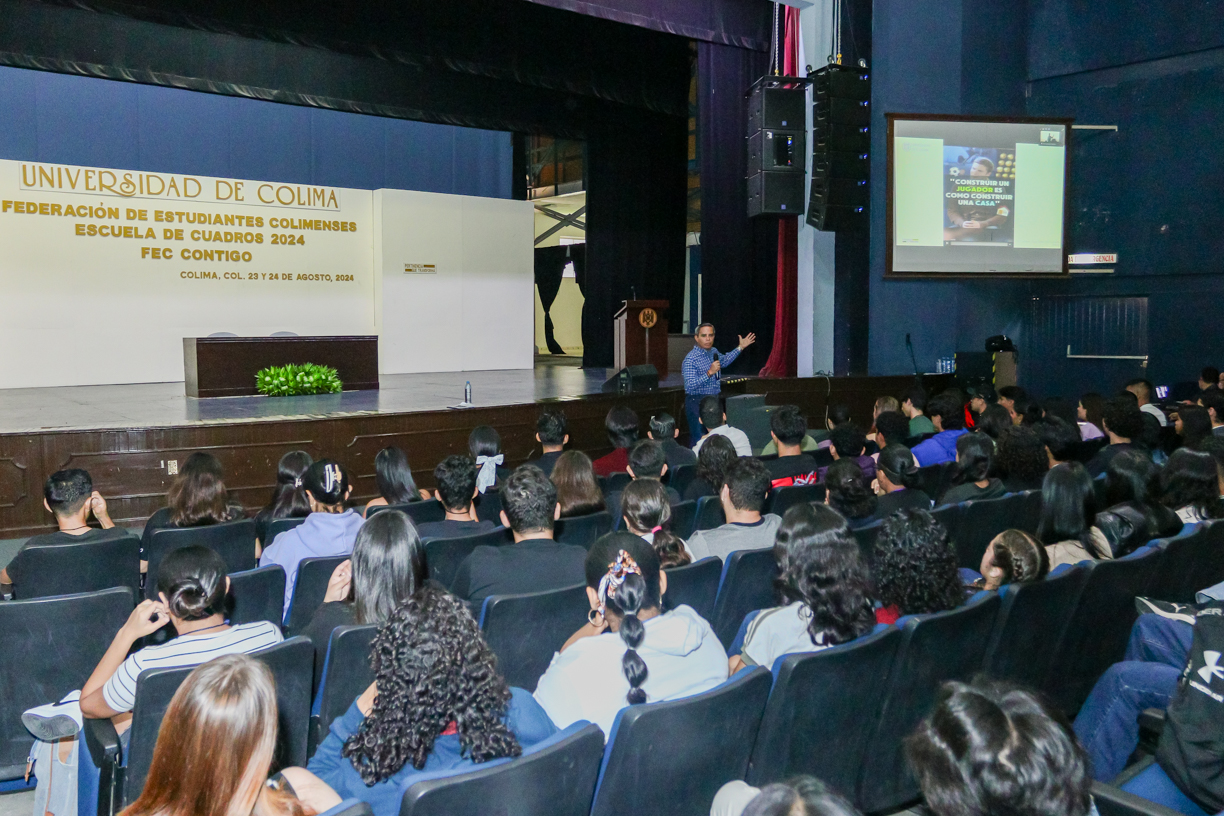 Este viernes, Christian Torres Ortiz Zermeño impartió la charla: “La construcción de un liderazgo Universitario”, a estudiantes que buscan presidir las sociedades de alumnos en sus planteles o quieren pertenecer a una planilla, esto como parte de las actividades que se realizan durante las jornadas de la Escuela de Cuadros, que cada año organiza la Federación de Estudiantes Colimenses (FEC).