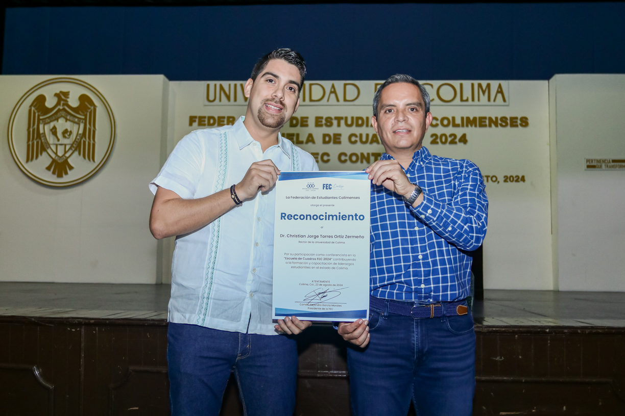Este evento se llevó a cabo en el Paraninfo de la UdeC y se transmitió por redes sociales a los campus de Tecomán y Manzanillo. Camilo García Morales, presidente de la FEC, agradeció al rector que compartiera con ellos algunos consejos para ejercer su liderazgo: “Como líderes estudiantiles sabremos estar a la altura de nuestras responsabilidades y podremos abonar al cuidado, defensa e impulso de las actividades institucionales”.