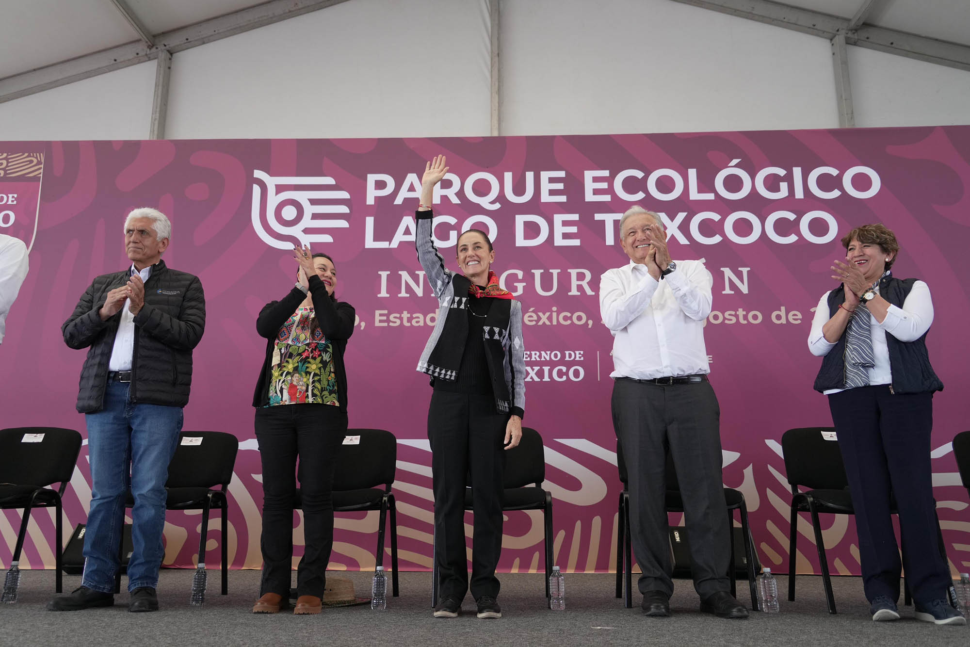 “Y hoy vengo aquí con ustedes a comprometerme, a decirles que: Vamos a continuar con la Cuarta Transformación de la Vida Pública, que no hay marcha atrás, que no hay regreso al pasado, que no regresa la corrupción y no regresan los privilegios a nuestro país; que, al contrario, vamos a avanzar con la Transformación, que vamos a mantener, a consolidar todos los Programas del Bienestar del Presidente López Obrador: la Pensión a Adulto Mayor; el apoyo a jóvenes de preparatoria; las Universidades Benito Juárez y más universidades; el apoyo al campo, “Sembrando Vida”; “Jóvenes Construyendo el Futuro”; y también, la siguiente etapa del Lago de Texcoco, porque no vamos a abandonar este parque, vamos a seguir trabajando —así que Iñaki, si tienes ánimo y fuerza, te invitamos a que nos sigas acompañando—, para seguir consolidando el Parque Ecológico del Lago de Texcoco”, fue el compromiso.