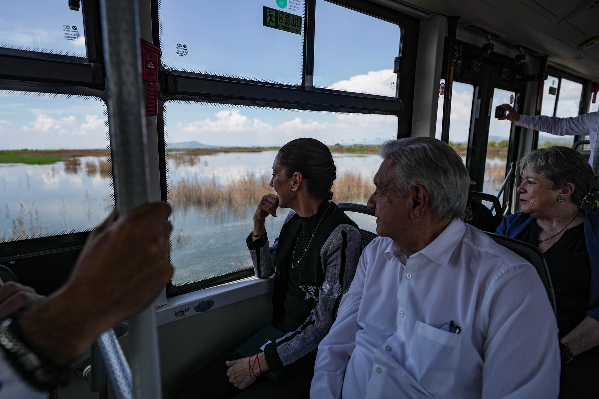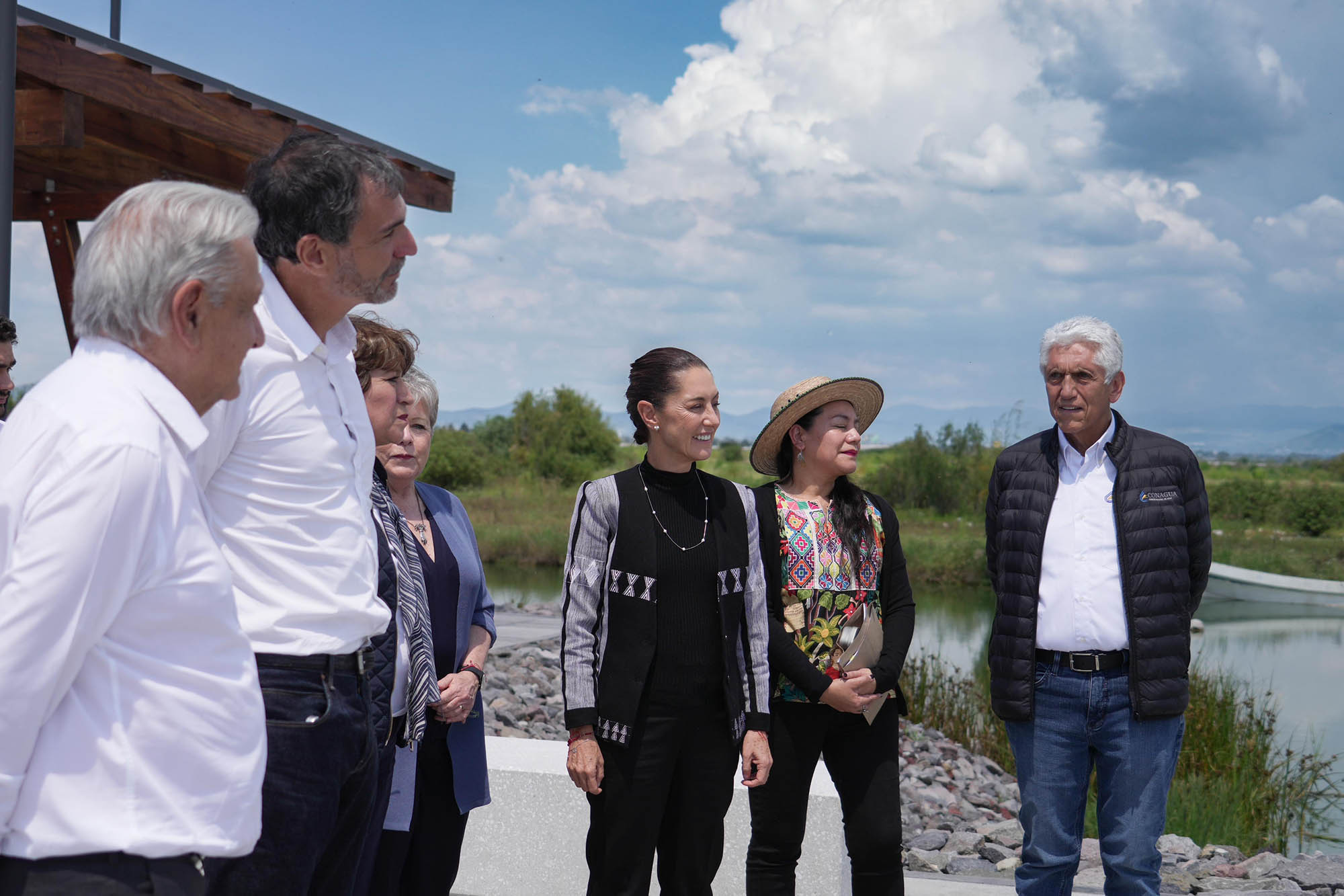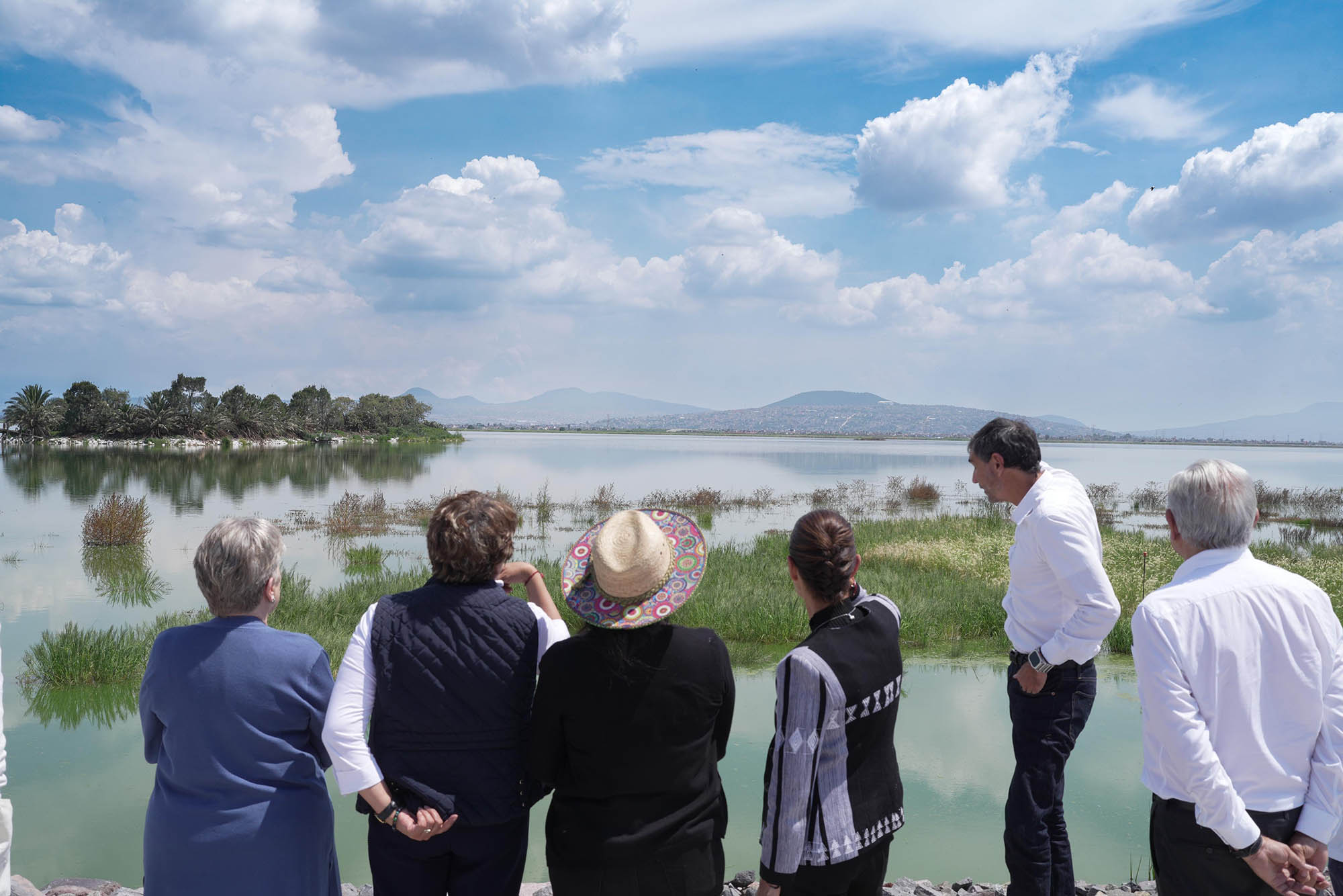 Al evento también acudieron la gobernadora del Estado de México, Delfina Gómez; la secretaria de Medio Ambiente y Recursos Naturales, María Luisa Albores; la secretaria de Relaciones Exteriores, Alicia Bárcena; el director general de la Comisión Nacional del Agua (CONAGUA), Germán Arturo Martínez Santoyo; el director general del IMSS, Zoé Robledo; el subsecretario de Egresos de la Secretaría de Hacienda y Crédito Público, Juan Pablo De Botton Falcón; el director general del Parque Ecológico de Texcoco, Iñaki Echeverría Gutiérrez; y los representantes del Frente de Pueblos en Defensa de la Tierra de Atenco, Jesús Adán Espinoza Reyes, María Antonia Trinidad Ramírez Velázquez, Arturo González e Ignacio del Valle Medina.