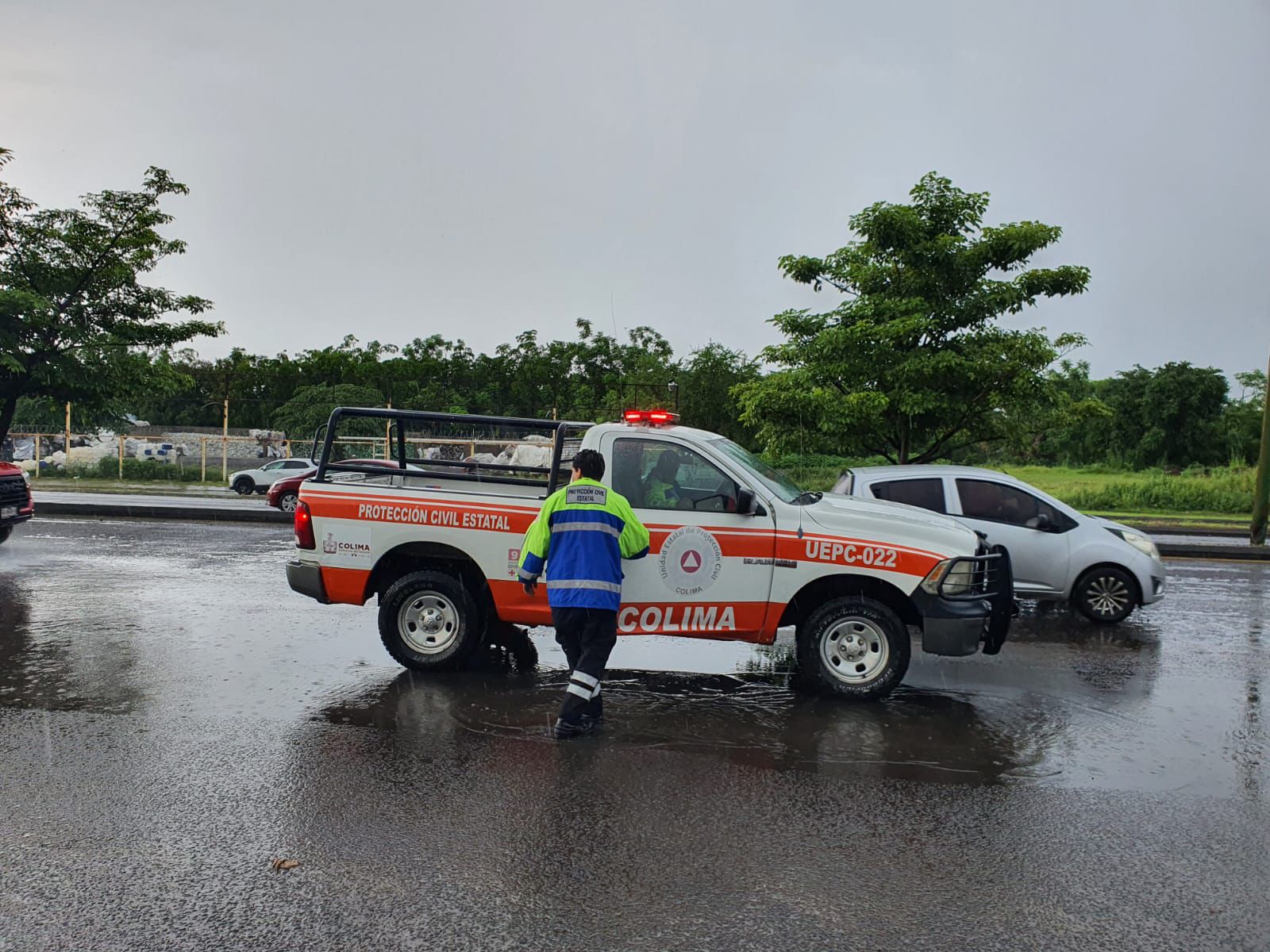 Hasta las 11:00 de la mañana, la UEPC cuenta con el reporte del desbordamiento del Río Colima -a la altura de la avenida 20 de Noviembre, al sur de la ciudad de Colima-, un árbol caído, un incendio de casa-habitación por fuga de gas en el municipio de Colima, un accidente de motocicleta y al menos cinco vehículos afectados tras las intensas lluvias.