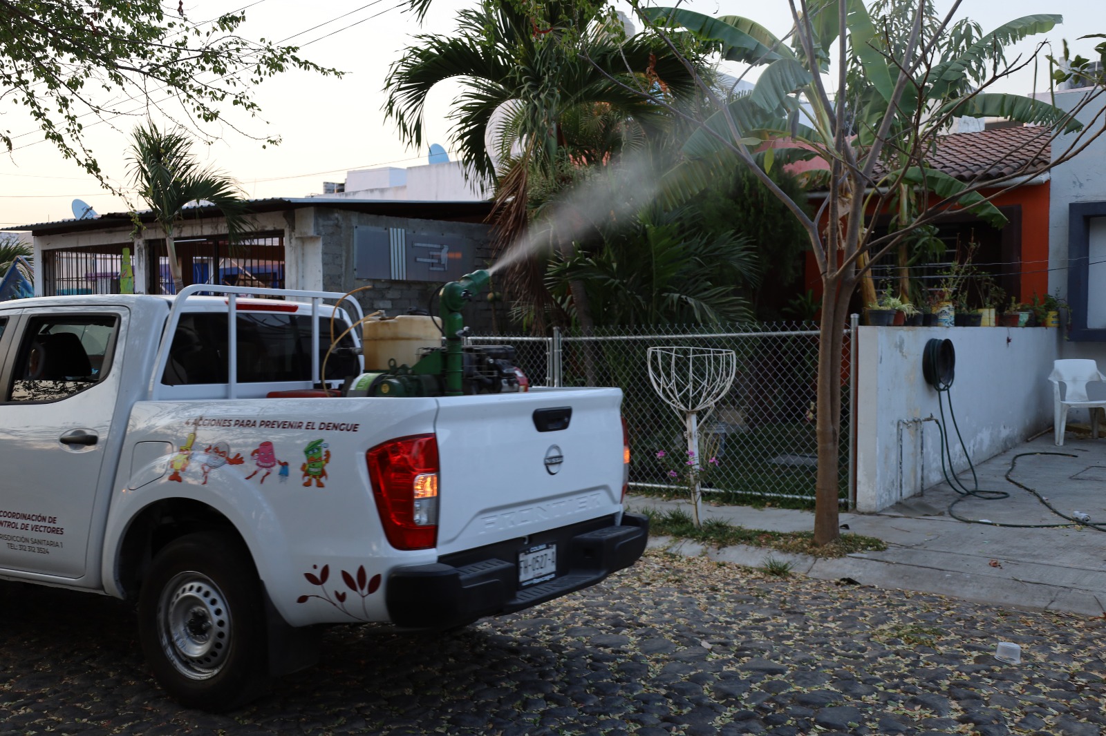 Esta fumigación, que se realiza para disminuir la densidad del mosco transmisor y el riesgo de infectar a la población, se realiza este jueves en la cabecera municipal de Ixtlahuacán y en Coquimatlán en la comunidad de Jala, las colonias Valle de las Huertas y Jardines del Llano y la zona centro de Coquimatlán.