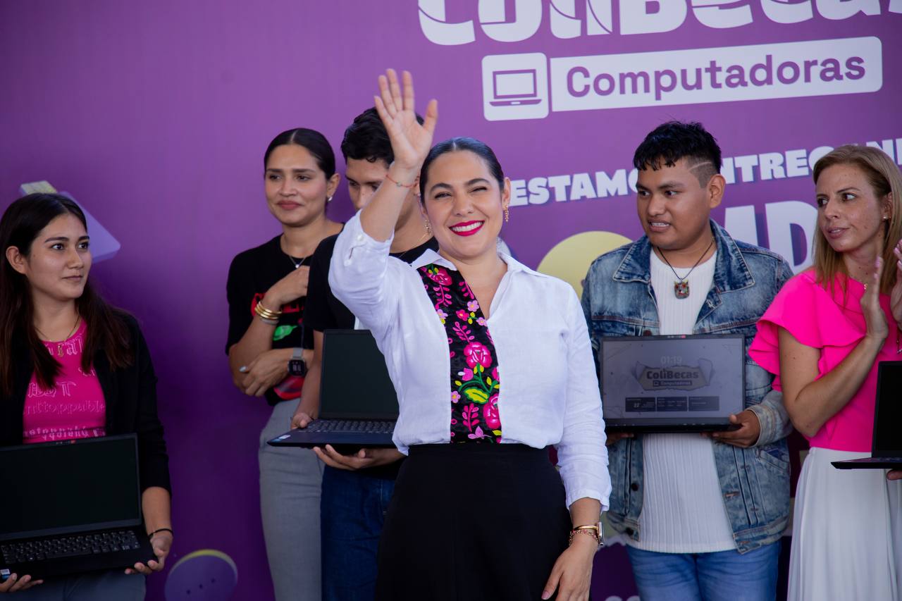 Este viernes en Comala, la gobernadora Indira Vizcaíno Silva encabezó la quinta jornada consecutiva de entregas de laptops gratuitas a estudiantes de secundarias y nivel profesional en escuelas públicas, donde 210 alumnas y alumnos de la Universidad Intercultural de Colima (UIC) y la Escuela de Trabajo Social ‘Vasco de Quiroga’ recibieron sus ColiBecas Computadoras, con inversión de 1.6 millones de pesos.