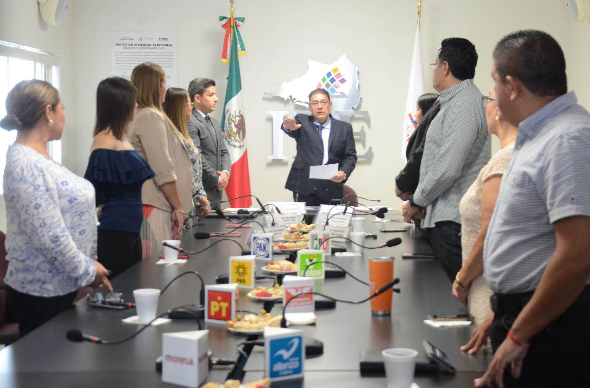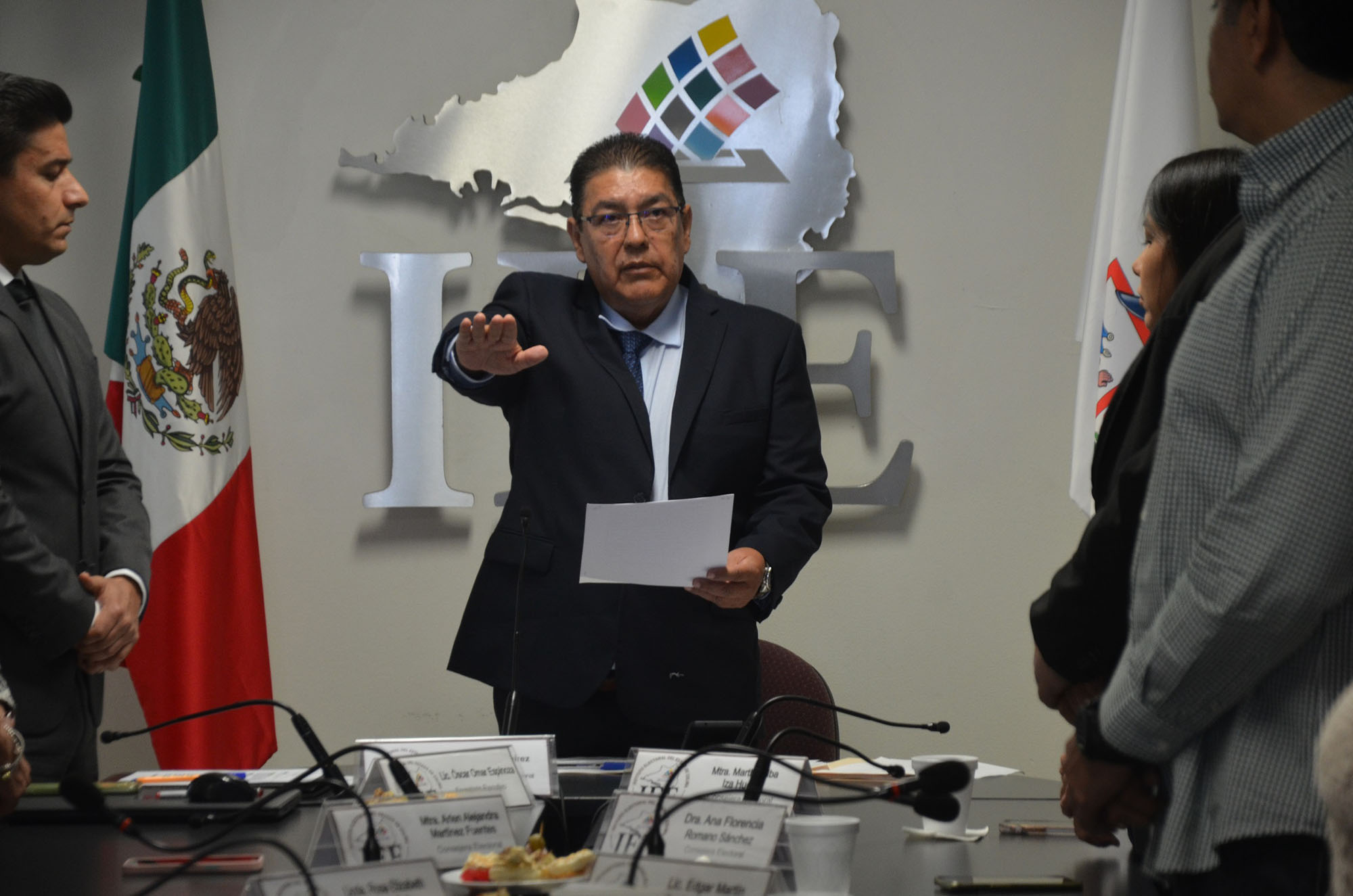 Al hacer uno de la voz, las y los integrantes del Órgano Superior de Dirección: Consejeras Electorales, Arlen Martínez Fuentes, Rosa Elizabeth Carrillo Ruiz y Ana Florencia Romano; el Consejero Electoral, Martín Dueñas; y representaciones de los partidos políticos; aplaudieron la designación de Juan Ramírez Ramos como Consejero Presidente Provisional del IEE, y refrendaron su apoyo y compromiso para trabajar de manera colegiada a favor de la institución, la ciudadanía y la democracia.