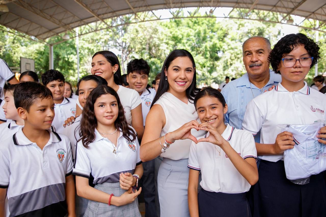 La mañana de este miércoles, el Gobierno del Estado de Colima continuó la entrega del programa ColiBecas Uniformes, en la secundaria ‘Enrique Corona Morfín’ en la capital colimense. Ahí la gobernadora Indira Vizcaíno Silva otorgó este beneficio a 642 estudiantes de este plantel.