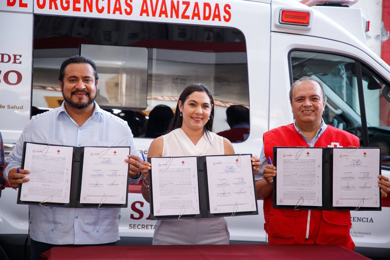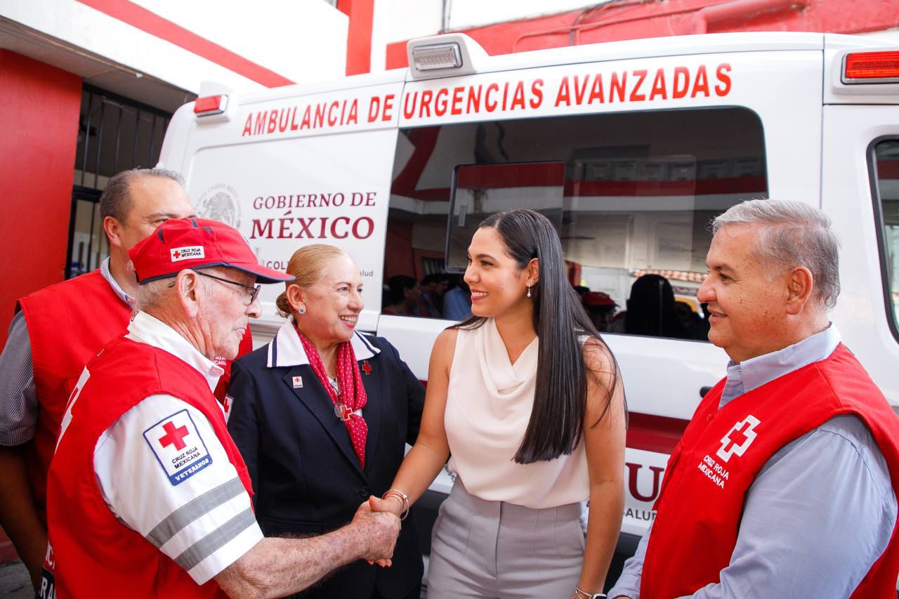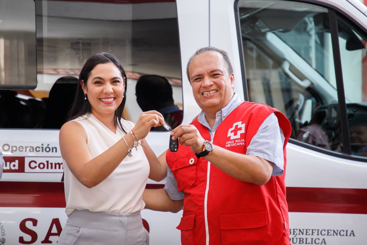 La gobernadora de Colima, Indira Vizcaíno Silva, entregó este miércoles una ambulancia de urgencias avanzadas y dos desfibriladores a la Delegación Estatal de la Cruz Roja, con inversión total por más de 2.4 millones de pesos, gracias al apoyo de la Administración de la Beneficencia Pública del Estado y la Administración del Patrimonio de la Beneficencia Pública del Gobierno de México.