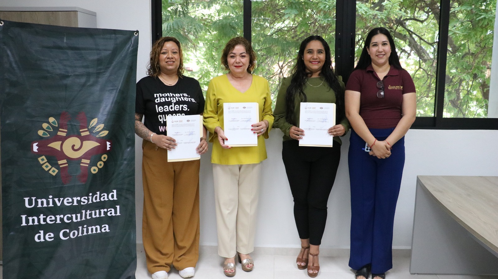 Con el objetivo de apoyar a padres y madres de familia que son estudiantes, y garantizar que sus hijos e hijas se encuentren en espacios seguros y adecuados, este miércoles se firmó un convenio de colaboración entre DIF Estatal Colima y Universidad Intercultural de Colima (UIC), que permitirá que estudiantes de la UIC puedan dejar a sus hijas e hijos en los Centros Asistenciales de Desarrollo Infantil (CADI), donde recibirán cuidados, educación y alimentación garantizada.