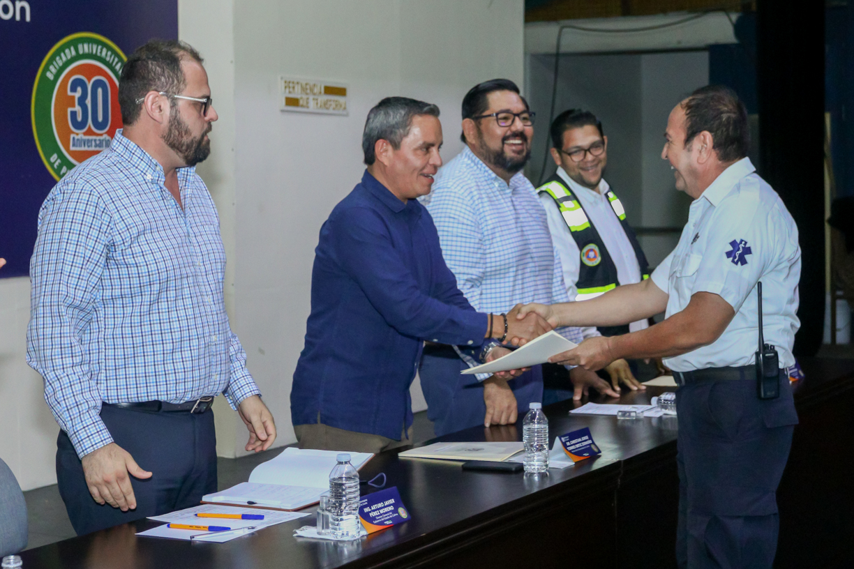 Finalmente, extendió un reconocimiento y felicitación a las personas que intervienen en las acciones de protección civil en la comunidad universitaria.