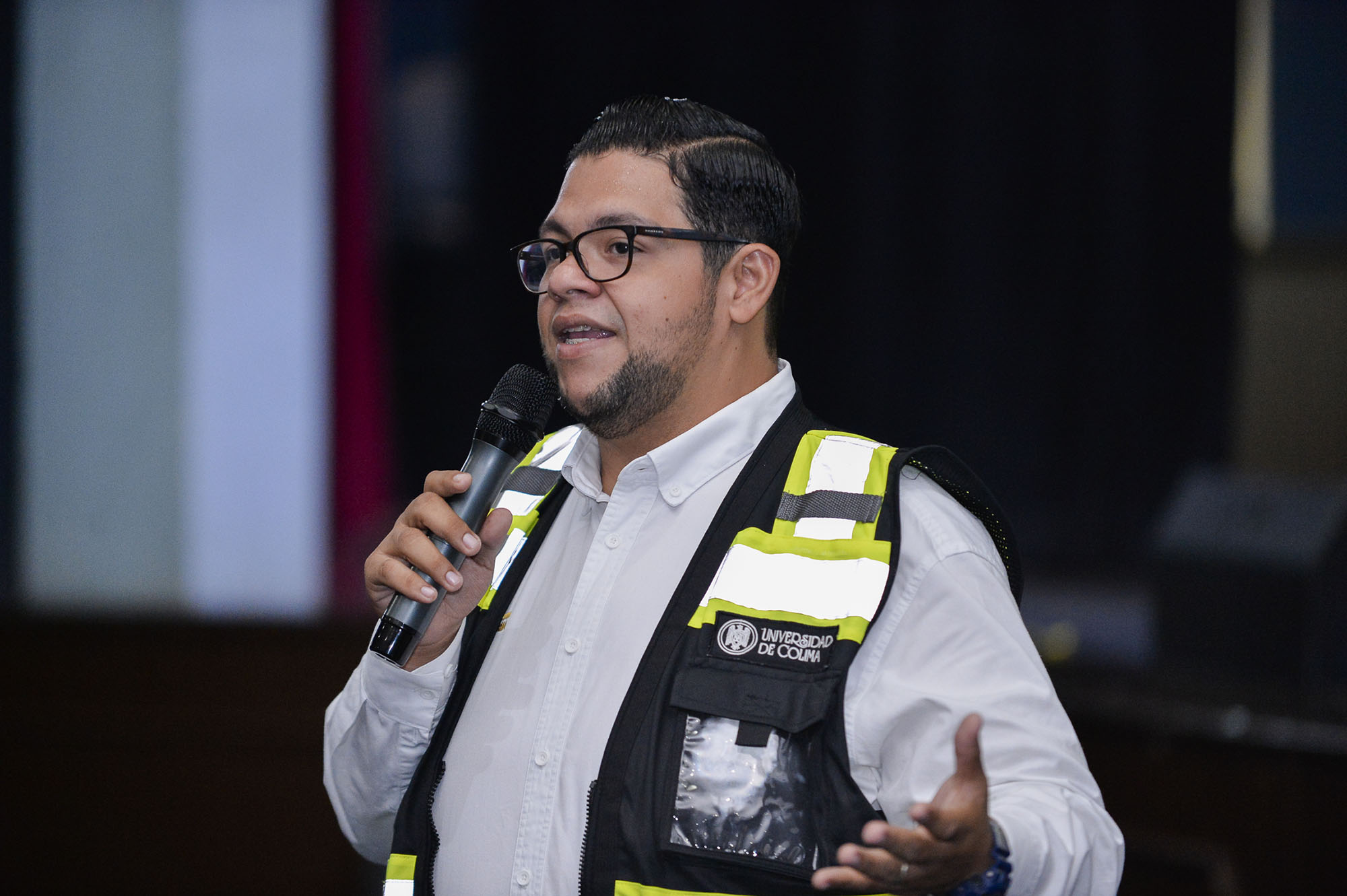 Marcos Buenrostro Jr., encargado de la Unidad de Protección Civil, inició el foro con la conferencia: “Presente y futuro de las brigadas internas de Protección Civil Universitarias”, en la que abordó la historia de la cultura de protección en esta casa de estudios.