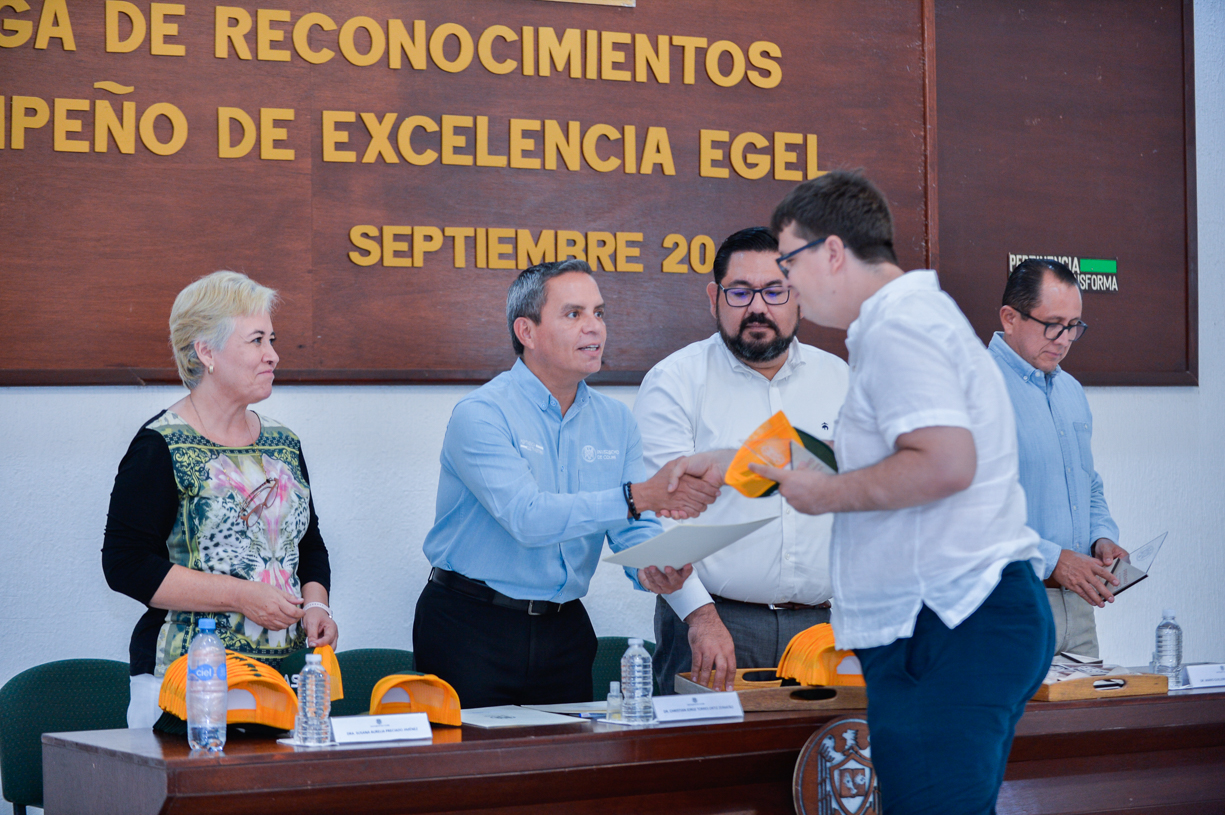 Fueron 82 las y los egresados de diferentes carreras de la Universidad de Colima (UdeC) quienes recibieron este viernes el reconocimiento al Desempeño de Excelencia EGEL julio 2023-enero 2024, en una ceremonia encabezada por Christian Torres Ortiz Zermeño, rector de esta casa de estudios, realizada en el auditorio de la Facultad de Enfermería.
