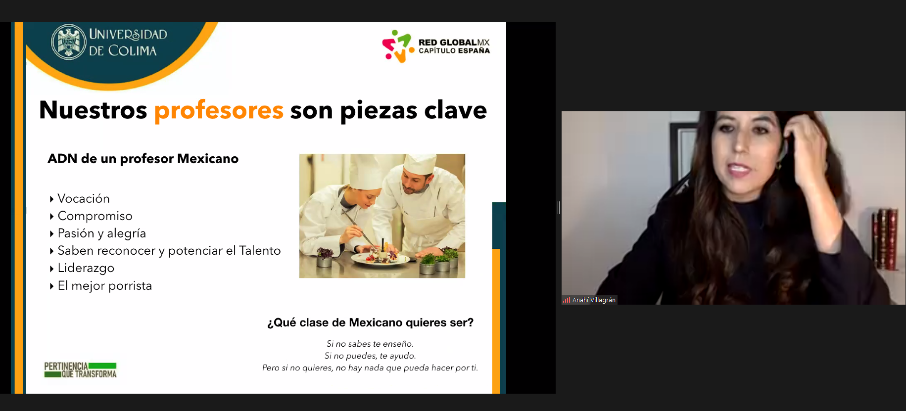 En días recientes se impartió la conferencia: “Potenciar el talento mexicano en el extranjero”, a cargo de Anahí Villagrán Arzola, en el marco de la “Red Global MX Capítulo España y la Universidad de Colima (UdeC), a estudiantes y profesores de las facultades de Turismo y Gastronomía campus Manzanillo, y de Turismo campus Villa de Álvarez.