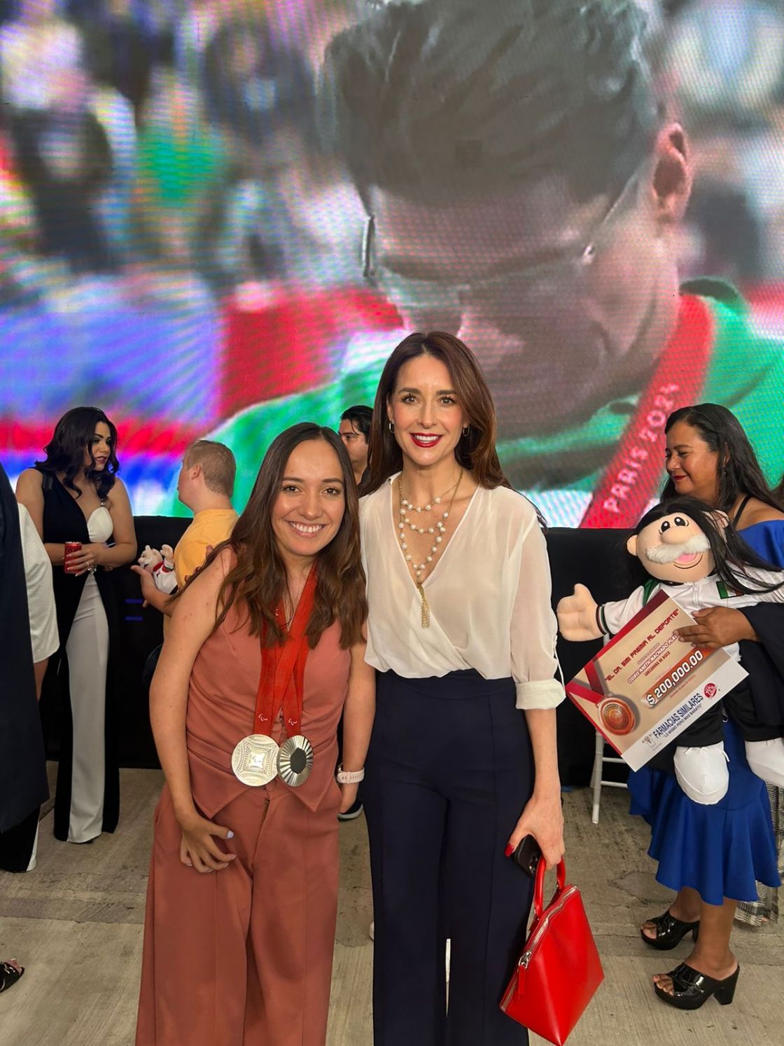 En el evento estuvieron presentes los 14 medallistas paralímpicos quieres recibieron un premio monetario, además, se les hizo entrega de un dije de oro con la cara de la famosa botarga bailarina de doctor y, como buen anfitrión, les personalizaron un peluche del Dr. Simi.
