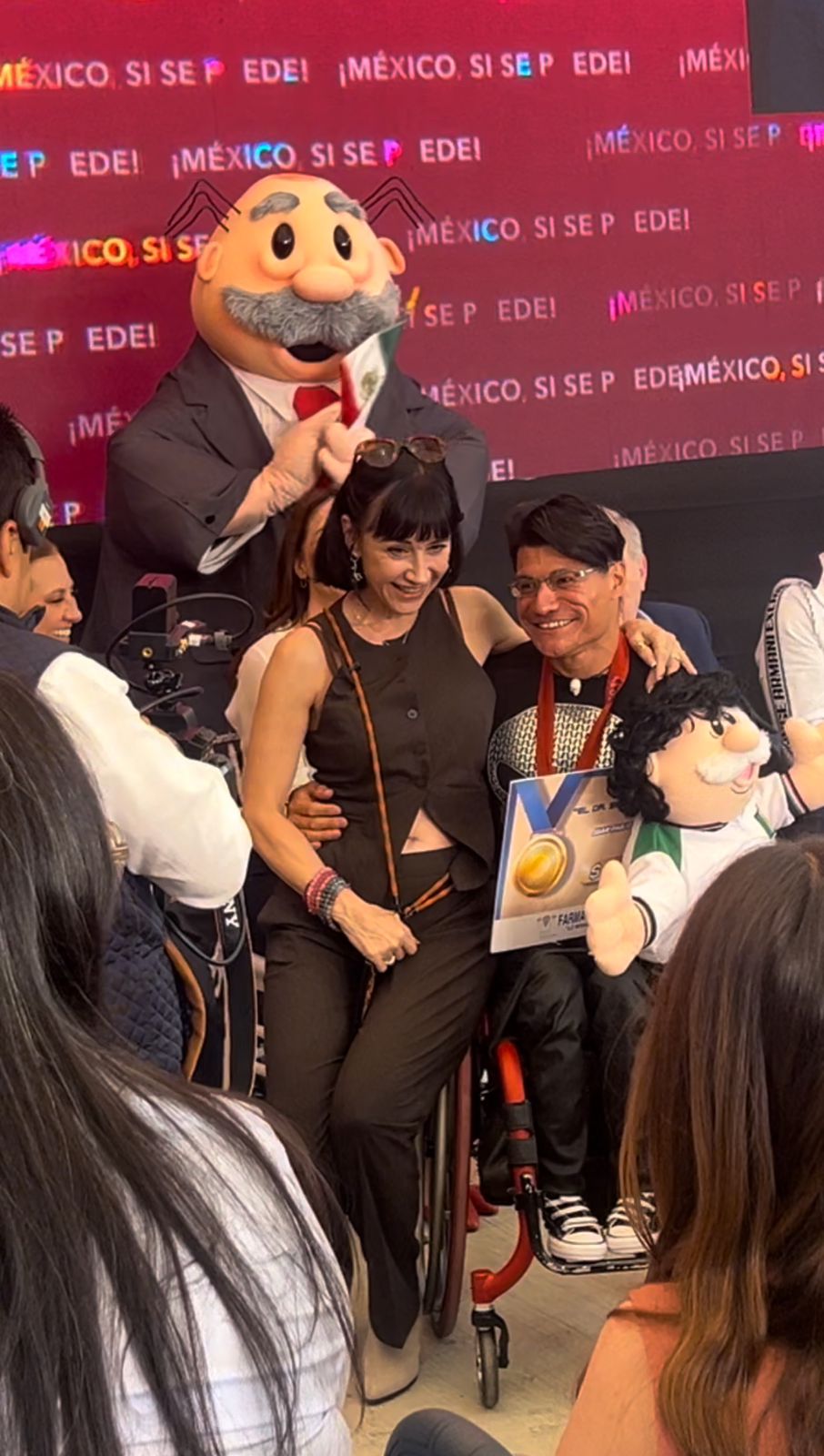 Tal fue el caso de Juan Pablo Cervantes García, aseguró estar, sí, feliz, por el premio, pero había algo que realmente le emocionaba, una experiencia única: estar tan cerca de personajes famosos. En ese momento, la cantante y actriz, Susana Zavaleta, se levantó y compartió la silla de ruedas del atleta, mientras él la abrazaba, con una sonrisa de oreja a oreja, ambas de color rojo como su rostro ruborizado.