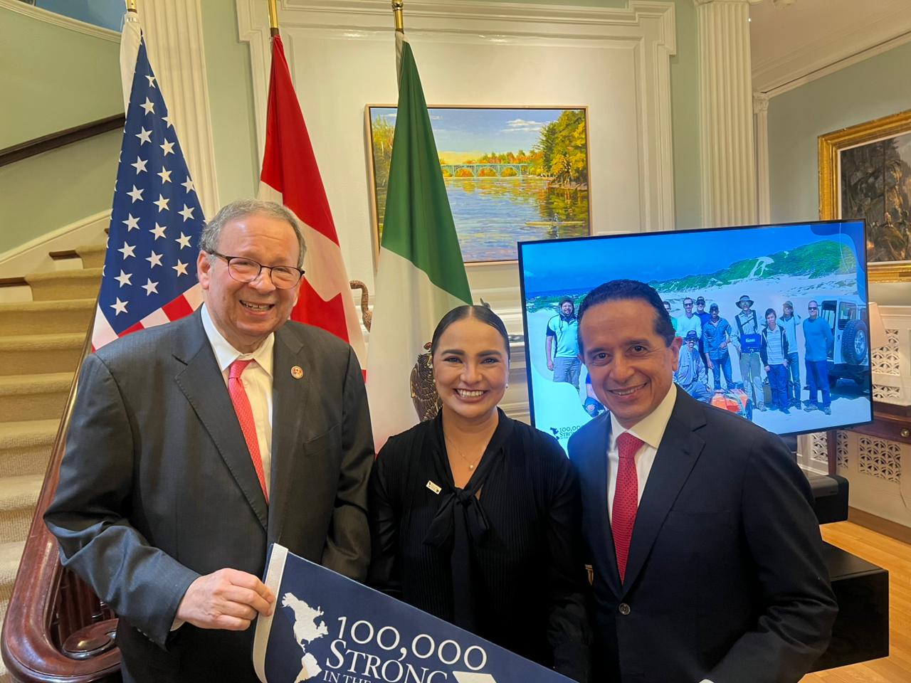La convocatoria 100K Strong North America es apoyada por Partners of the Americas en colaboración con la oficina de Asuntos del Hemisferio Occidental del Departamento de Estado de los Estados Unidos y las embajadas de los EEUU en Ottawa y México. Cuenta con el apoyo de Global Affairs Canada (GAC) y Amazon, para expandir la cooperación innovadora e inclusiva en educación superior y los intercambios de estudiantes y profesores entre los tres países.