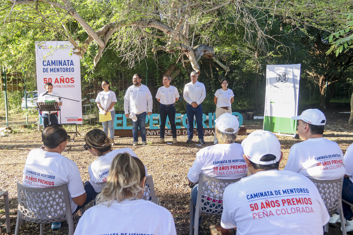 Con el propósito de comenzar la celebración por los 50 años de la entrega de los premios Peña Colorada, este viernes por la mañana, en el rancho El Peregrino, se realizó una caminata de Mentoreo en la que cerca de 40 docentes y funcionarios de la Universidad de Colima (UdeC) y de la empresa Peña Colorada conversaron con 53 jóvenes que recibirán este año el premio por tener el mejor promedio de su generación.
