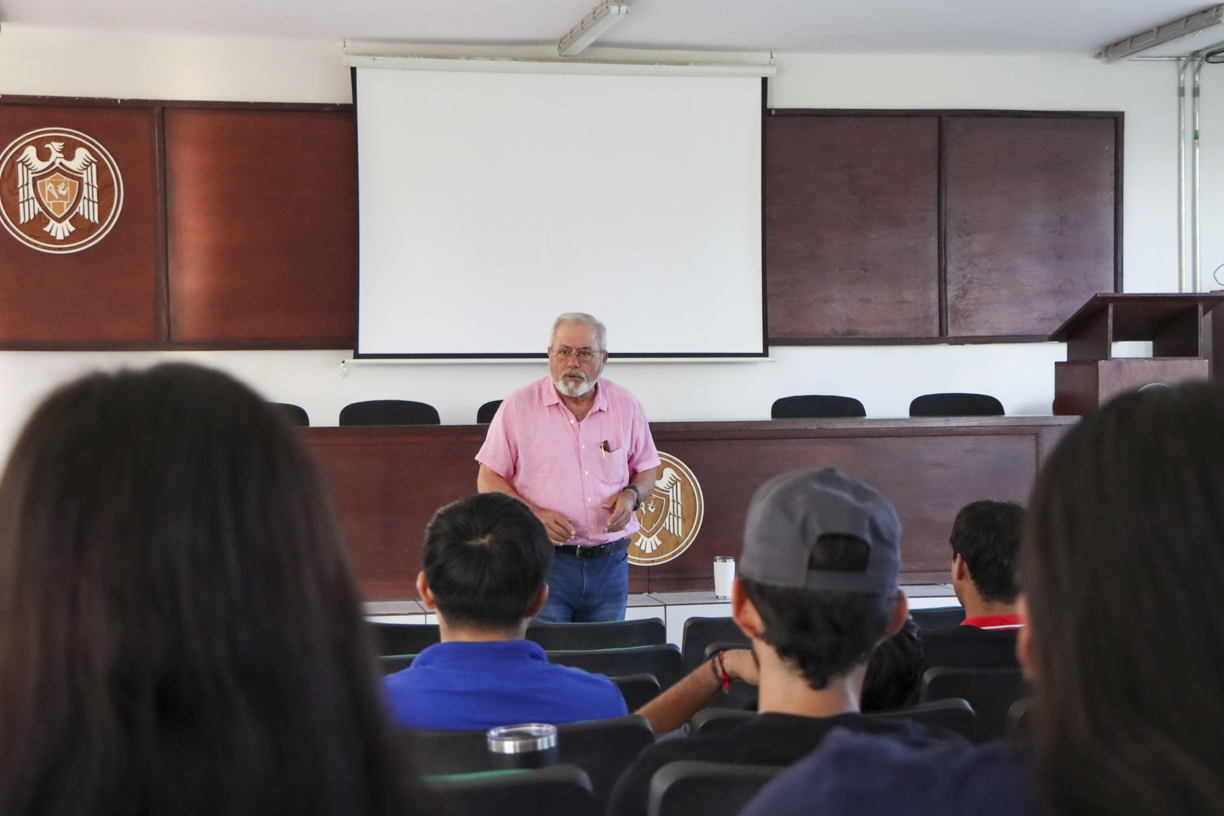 La charla la recibieron alumnas y alumnos del séptimo semestre de la carrera de Ingeniero Agrónomo de la Facultad de Ciencias Biológicas y Agropecuarias (FCBA), de la Delegación Tecomán de la Universidad de Colima, a invitación del Dr. José Manuel Palma García, profesor–investigador de esa facultad.
