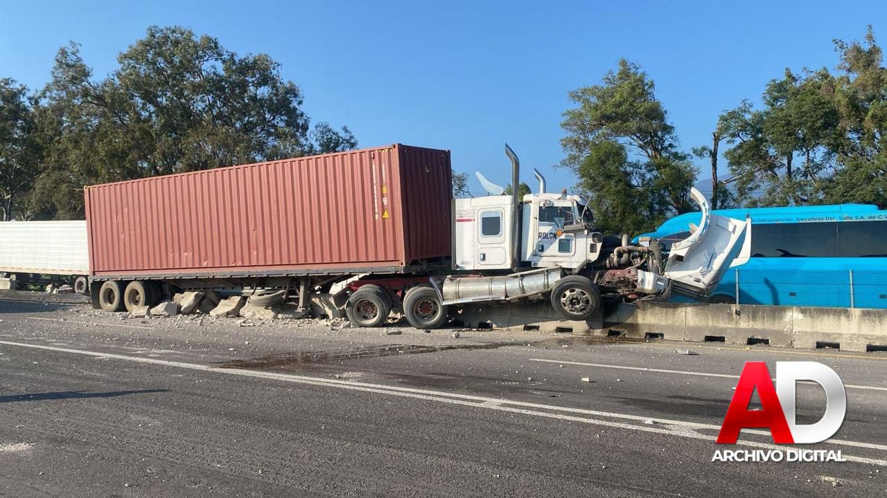 Este viernes, un tráiler sufrió un accidente en la autopista Guadalajara-Colima, impactando contra el muro de contención. El incidente tuvo lugar en el kilómetro 97, en dirección a Guadalajara, justo antes de llegar a Cuatro Caminos, frente a una gasolinera.