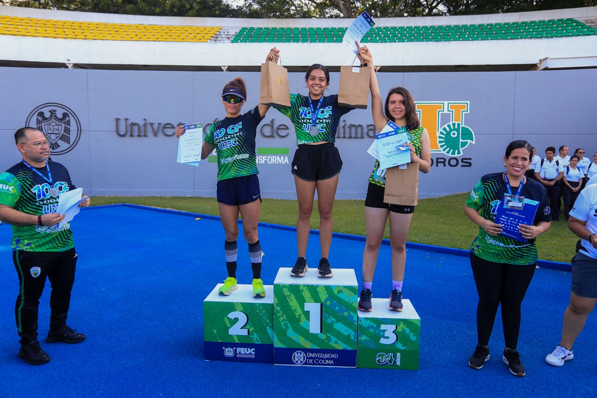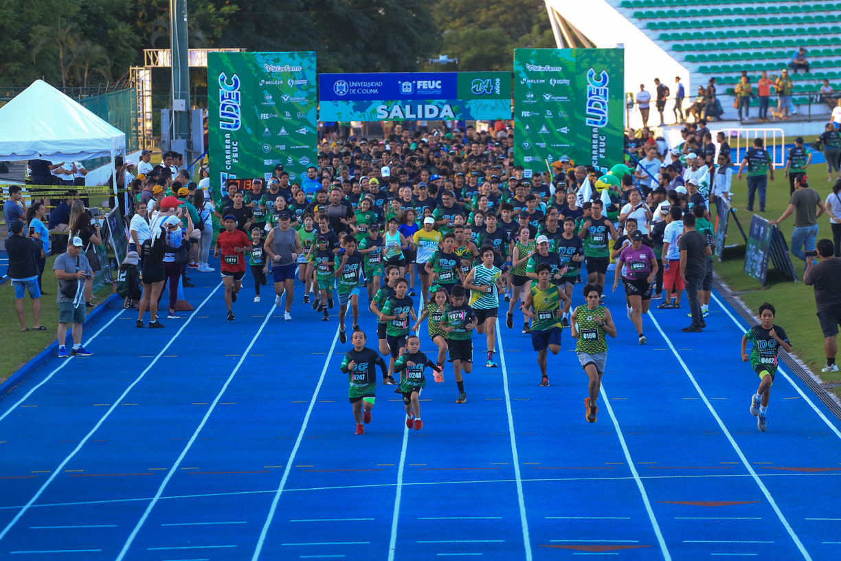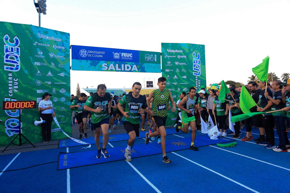 Con la participación de más de mil corredores, entre adultos, jóvenes, niños y niñas, este domingo se realizó con éxito la décima carrera FEUC-UdeC, en las categorías de 10, 5 y 3 kilómetros, con salida y meta en el estadio Olímpico de la Universidad de Colima. También hubo un espacio incluyente para personas con alguna discapacidad y otro más para quienes quisieron correr con sus mascotas.