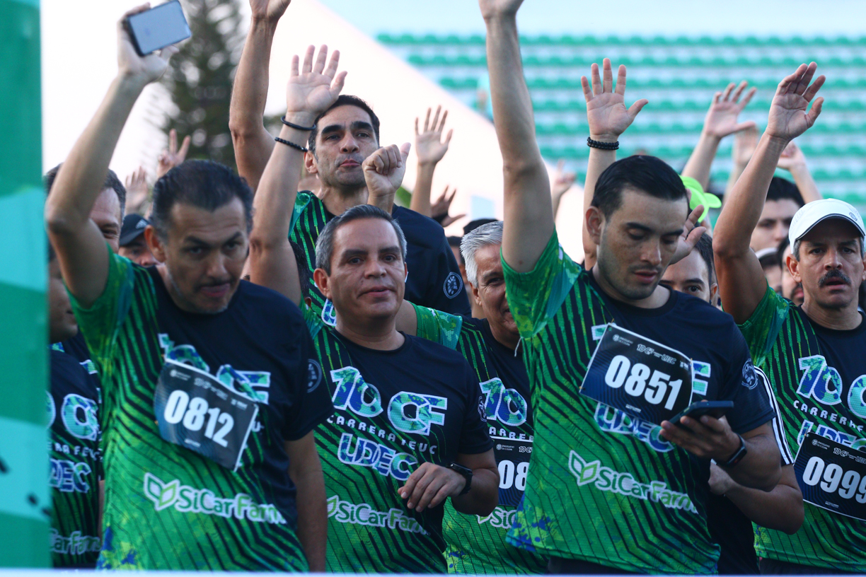 La carrera inició con un calentamiento, a las 6:45 de la mañana, y a las 7 arrancó el grupo de corredores y corredoras de los 10 kilómetros, donde corrió el rector de la UdeC, Christian Jorge Torres Ortiz Zermeño, con un tiempo de alrededor de 55 minutos. “Estamos muy contentos -dijo el rector- por esta gran convocatoria, por esta fiesta deportiva que tiene que ver con la propuesta que estamos haciendo desde la Universidad, de educación, cultura y deporte”.