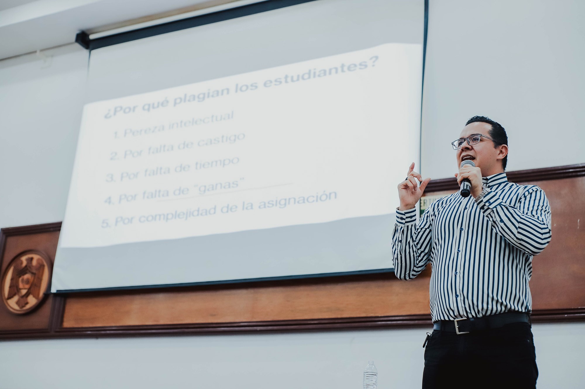 El ponente comentó que las razones más comunes por las cuales el estudiantado plagia son: pereza intelectual, falta de castigo, de tiempo, de ganas o por la complejidad de la asignación.