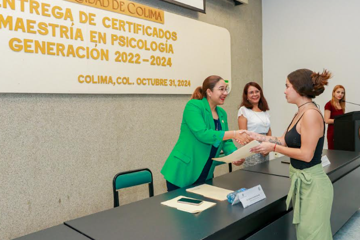 En una ceremonia académica realizada en el auditorio de la Facultad de Psicología este jueves por la mañana, se hizo entrega de certificados a 5 estudiantes que culminaron sus estudios de la Maestría en Psicología, generación 2022-2024 de la Universidad de Colima.