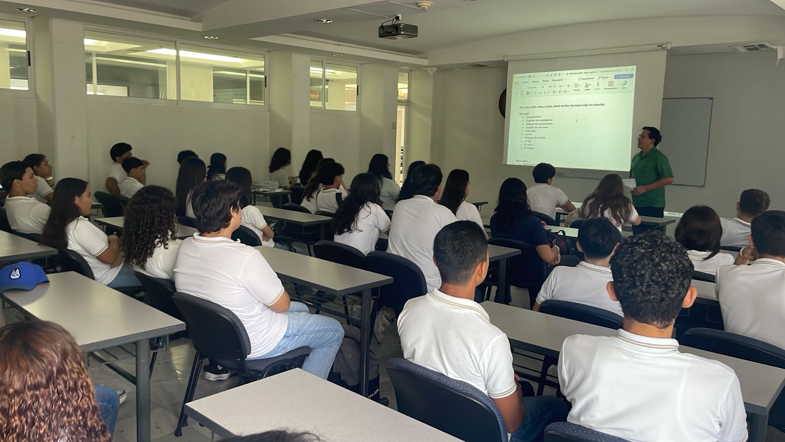 En el marco de los festejos por el 61 aniversario del Bachillerato 9, ubicado en la glorieta de San Pedrito, Manzanillo, el doctor Omar David Avalos Chávez, docente de la Facultad de Letras y Comunicación (FalCom), impartió las charlas: “Para qué, quién, cómo, cuándo, dónde escribo: brevísimo taller de redacción” y “Brevísima guía para escribir una historia: la voz narrativa” a estudiantes del plantel, esto en el Centro de Tecnología Educativa Campus El Naranjo.