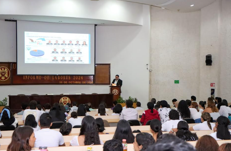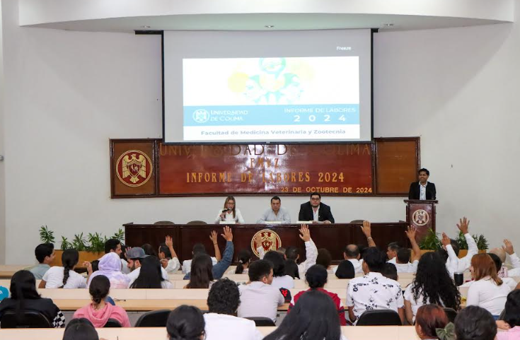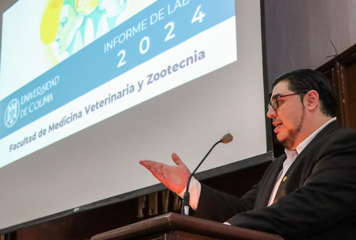 En días recientes, el Dr. Arturo César García Casillas, director de la Facultad de Medicina Veterinaria y Zootecnia (FMVZ) de la Universidad de Colima expuso ante las y los integrantes del Consejo Técnico y la comunidad universitaria del plantel, su informe de labores 2024.