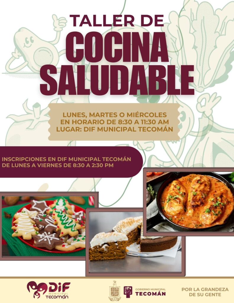 Con el objetivo de apoyar a las familias del municipio e incentivar a quienes buscan emprender un nuevo negocio, la Sra. Mili Cuevas Verduzco, presidenta del DIF Municipal Tecomán, invitó a la ciudadanía a participar en el “Taller de Cocina Saludable”, el cual tiene por objetivo proporcionar herramientas y desarrollar habilidades para la preparación de gran variedad de platillos y repostería; además de presentar un menú especial navideño.