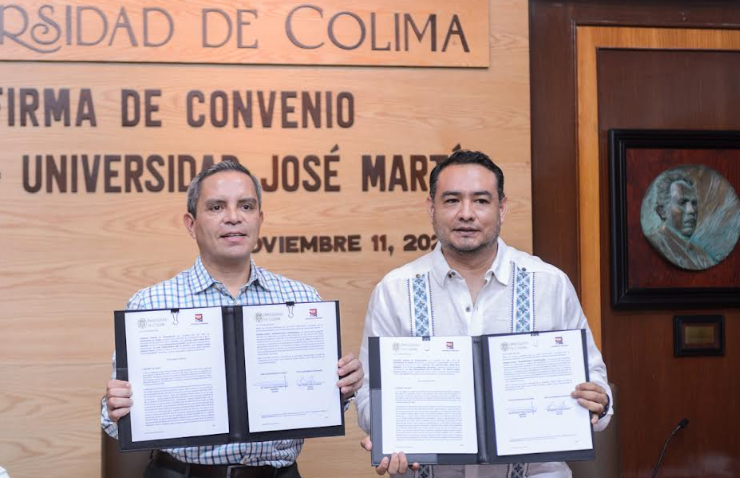 El convenio fue firmado por el rector Christian Torres Ortiz Zermeño, de la UdeC y por el rector de la Universidad José Martí, Daniel Barajas Yescas. La ceremonia se realizó en la sala de juntas de la Universidad de Colima.