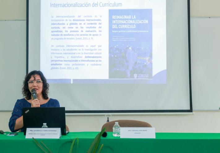 Antes de continuar, la ponente señaló que la internacionalización del currículo es la incorporación de las dimensiones internacionales, interculturales y globales en el contenido del currículo, así como los métodos de enseñanza y los servicios de apoyo de un programa de estudios.