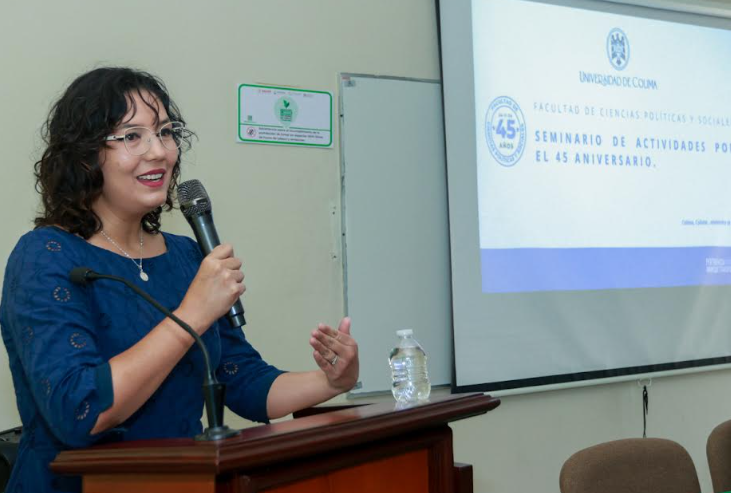 Como parte de las actividades realizadas por el 45 aniversario de creación de la Facultad de Ciencias Políticas y Sociales de la Universidad de Colima, este lunes se realizó la conferencia: “Prácticas internacionales para la internacionalización del currículum en Educación Superior”, a cargo de Ana Marcela Torres Hernández, presidenta del Consejo Mexicano de Estudios de Posgrado (COMEPO).