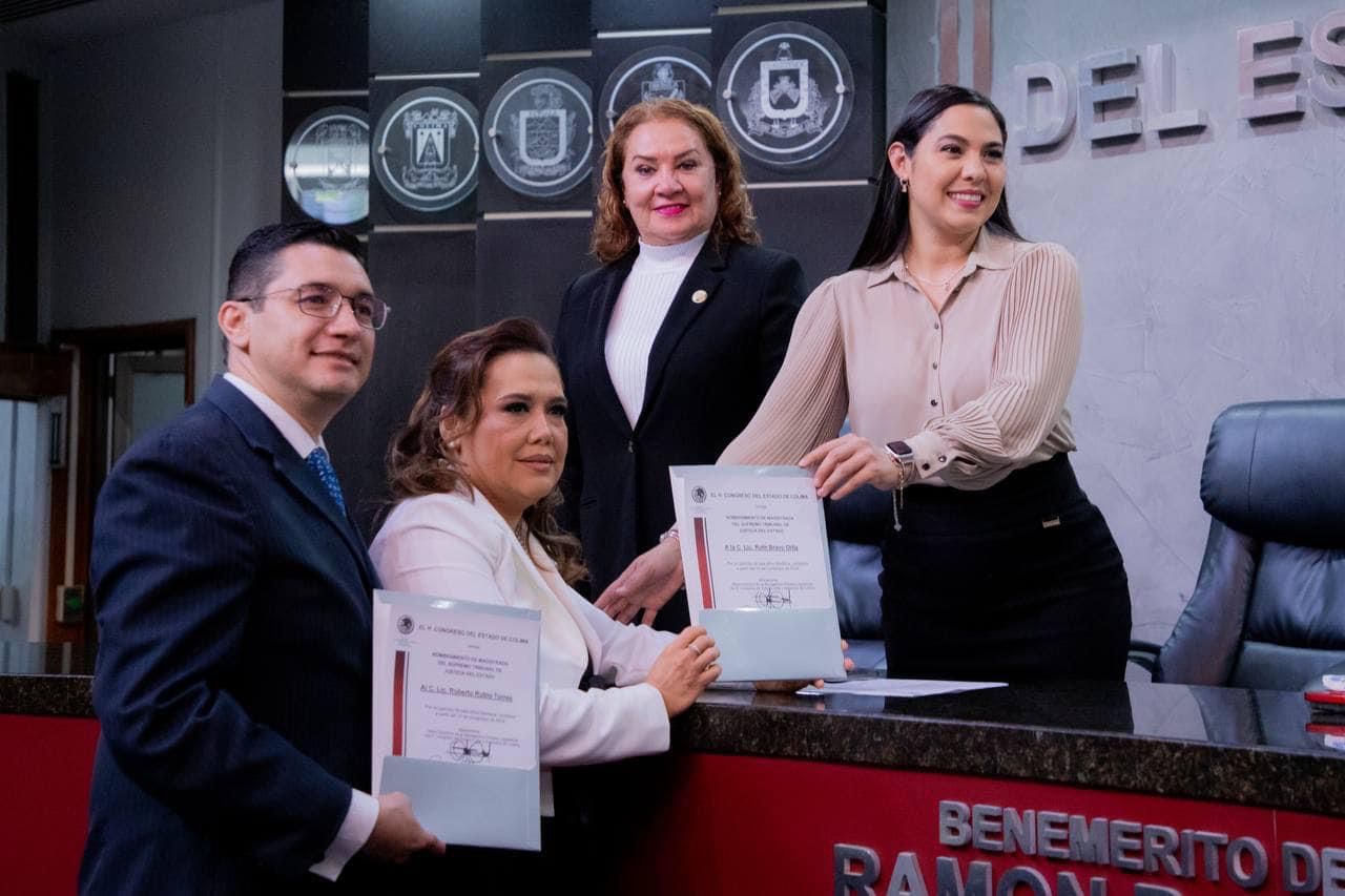 La mandataria estatal destacó que Bravo Ortiz y Rubio Torres son personas íntegras, reconocidas y sensibles, a quienes les reconoció todas sus capacidades y sus diferentes trayectorias y recorridos profesionales, pero coincidentes en el conocimiento del Derecho, la experiencia en el ejercicio del mismo y el compromiso con la legalidad y con los intereses del pueblo de Colima.
