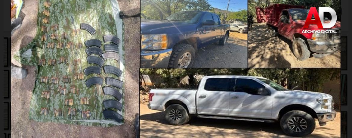 – En los municipios de Cosalá y Culiacán, personal de la Fiscalía General del Estado, en coordinación con personal de la Secretaría de Marina localizaron y aseguraron 05 vehículos, 50 litros de precursores químicos, 111 cartuchos, 9 cargadores, un chaleco táctico y dos granadas.