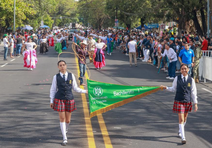 A las 9 inició el desfile por la Calzada Galván, donde los contingentes llenaron de vida las calles con colores, texturas y música. La Universidad de Colima destacó con la participación de un bloque de 800 integrantes, representando a su matrícula oficial de más de 30 mil estudiantes de todos los niveles educativos, desde bachillerato hasta posgrado.