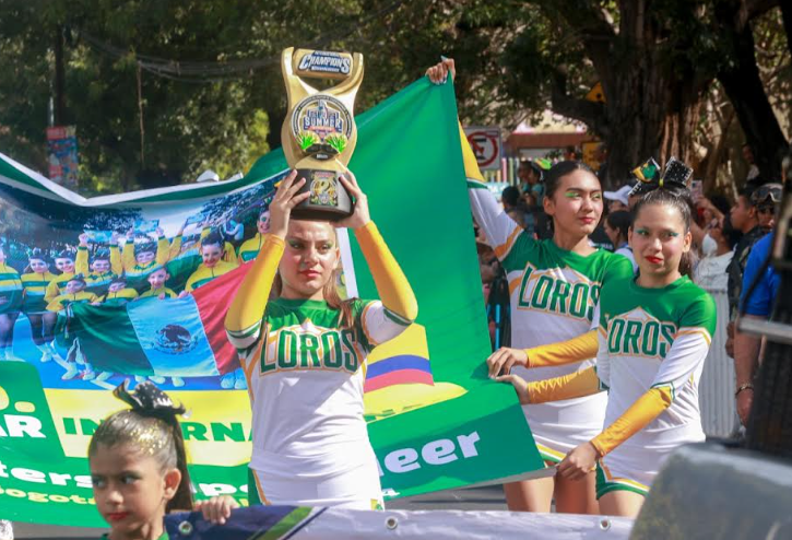 Las porristas universitarias y las mascotas oficiales, el Loro y la Lora, añadieron energía y alegría al desfile, reafirmando el compromiso de la Universidad con la educación integral.