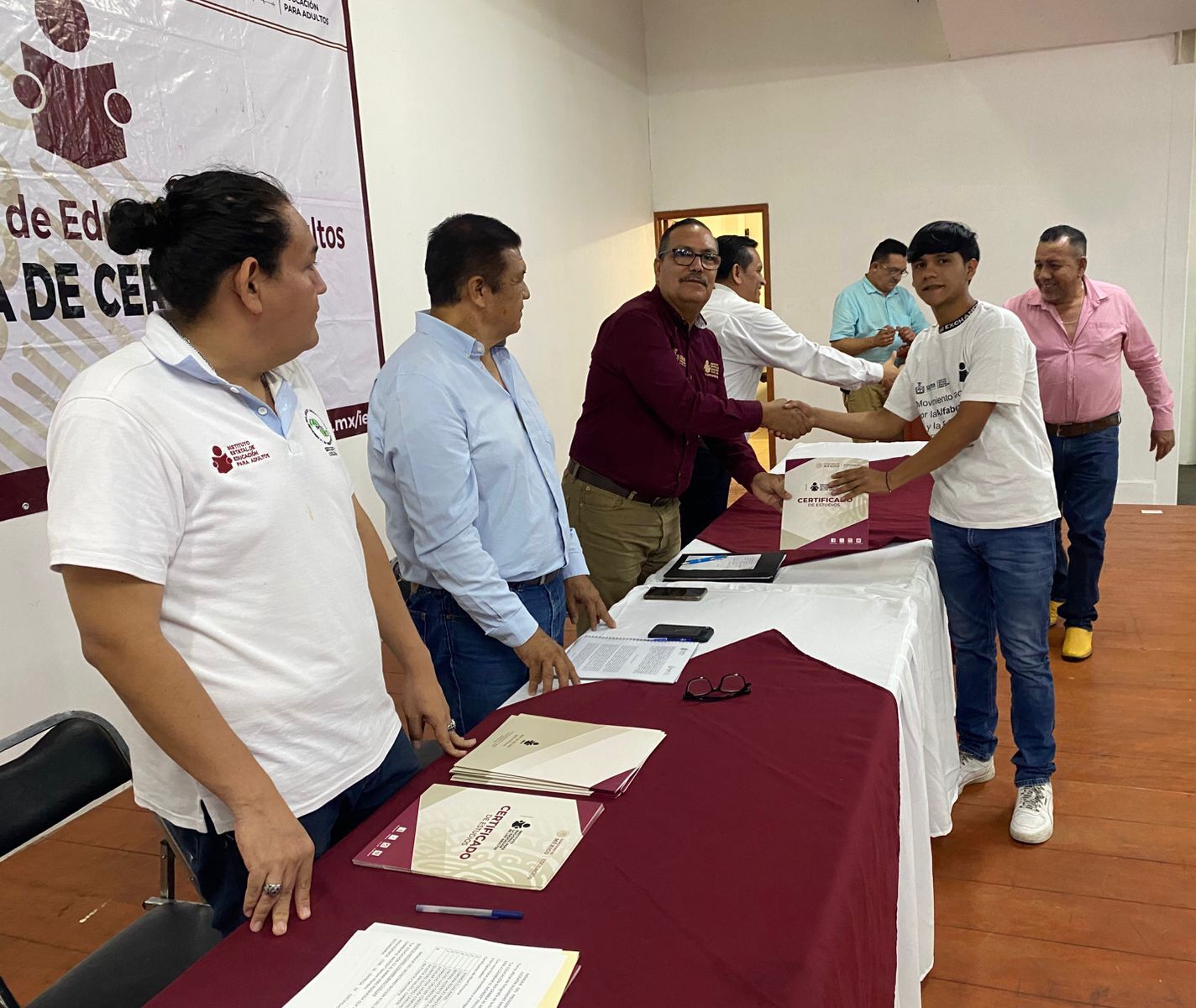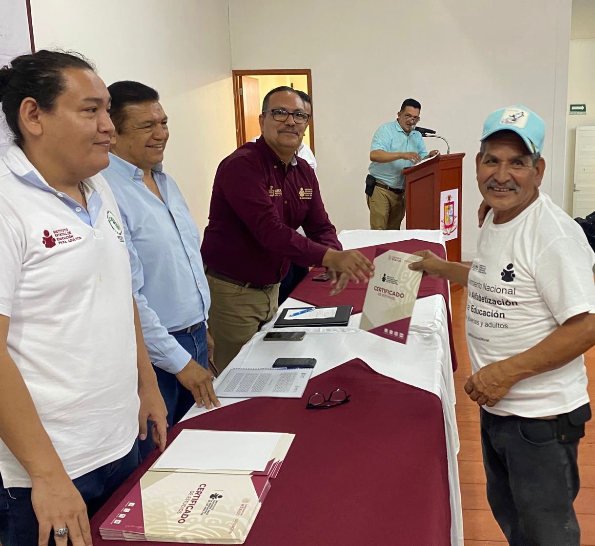 El director general del IEEA, Marco Antonio Rodarte Quintana, entregó los 25 certificados de educación básica: nueve de nivel primaria y dieciséis de secundaria a personas jóvenes y adultas.