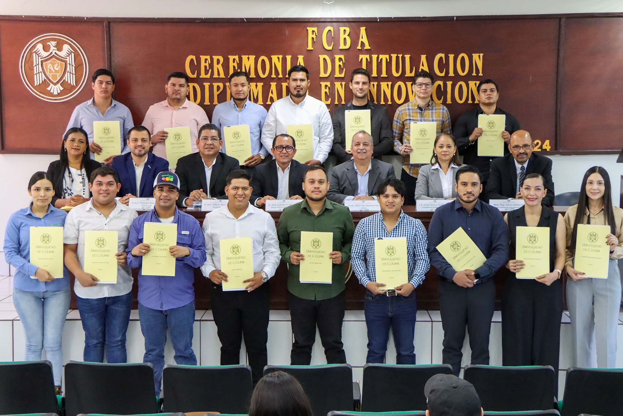 En un acto académico realizado en la Facultad de Ciencias Biológicas y Agropecuarias (FCBA) de la Universidad de Colima (UdeC), campus Tecomán, 17 egresados y egresadas tomaron protesta como ingenieros agrónomos. De estos, 12 se titularon mediante la modalidad de actualización de conocimientos a través del Diplomado en Innovación Agrícola, mientras que cinco lo lograron al aprobar el Examen General para el Egreso de la Licenciatura (EGEL).