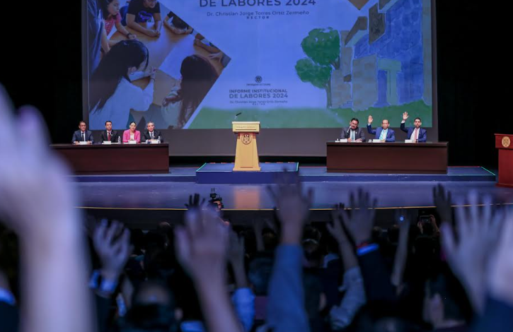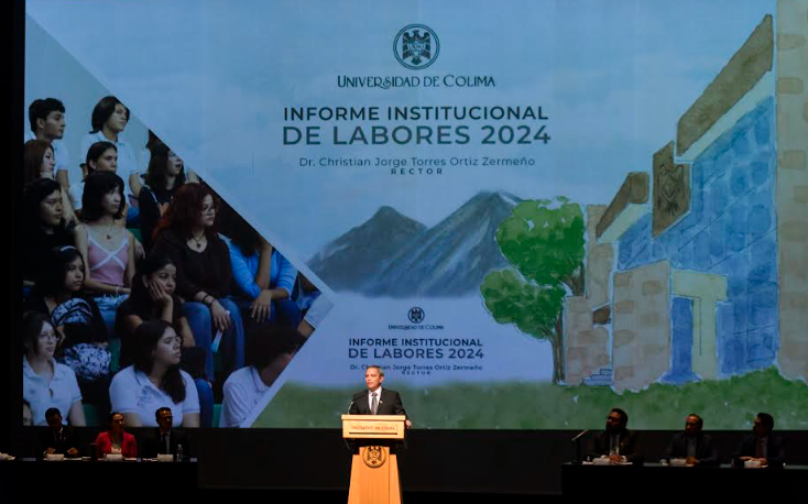 Este domingo, a las 11 de la mañana, el rector Christian Jorge Torres Ortiz Zermeño presentó su cuarto informe de labores al frente de la Universidad de Colima, en el Teatro Universitario, culminando de esta forma su primer período al frente de la institución. Ante el Consejo Universitario, funcionarios federales y estatales, exrectores, exgobernadores, miembros de la comunidad universitaria e invitados especiales, destacó los principales avances logrados en 2024, así como en los últimos cuatro años, en educación, investigación, extensión, igualdad de género, medio ambiente, digitalización e internacionalización. El evento fue presidido por la gobernadora del estado, Indira Vizcaíno Silva.